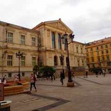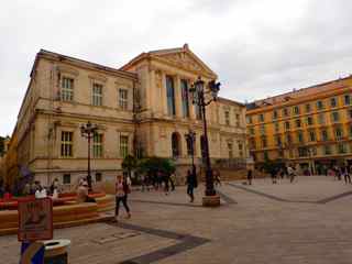 オペラ座から北の方に歩いていくとあります。黄色がかった色の外観で、入り口部分はギリシャ風の大きく立派な建物でした。壁などはところどころ古そうで歴史を感じさせます。