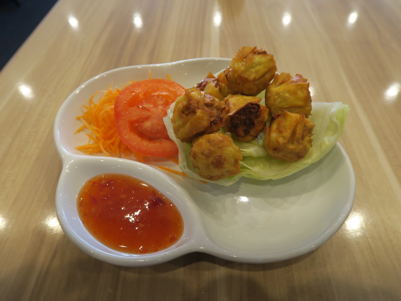 パンナカレーはややピリ辛で、もう旨い!としかいいようがない。タイ本国で食べるよりも全然美味しい。揚げシュウマイも大きさ、パリパリな食感ともに良く、こちらも美味しかった。またカレーと一緒に出てきたナンのようなモノも薄パリサクっで食べないつもりだったのに完食してしまった。