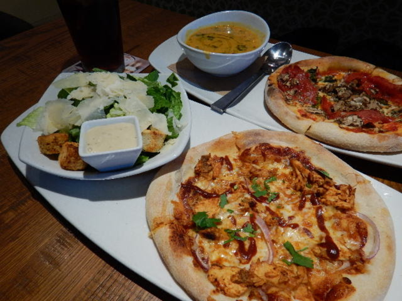 ショッピングモールの中に入っている、開放的な店舗のピザ。