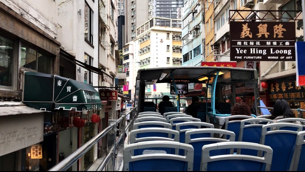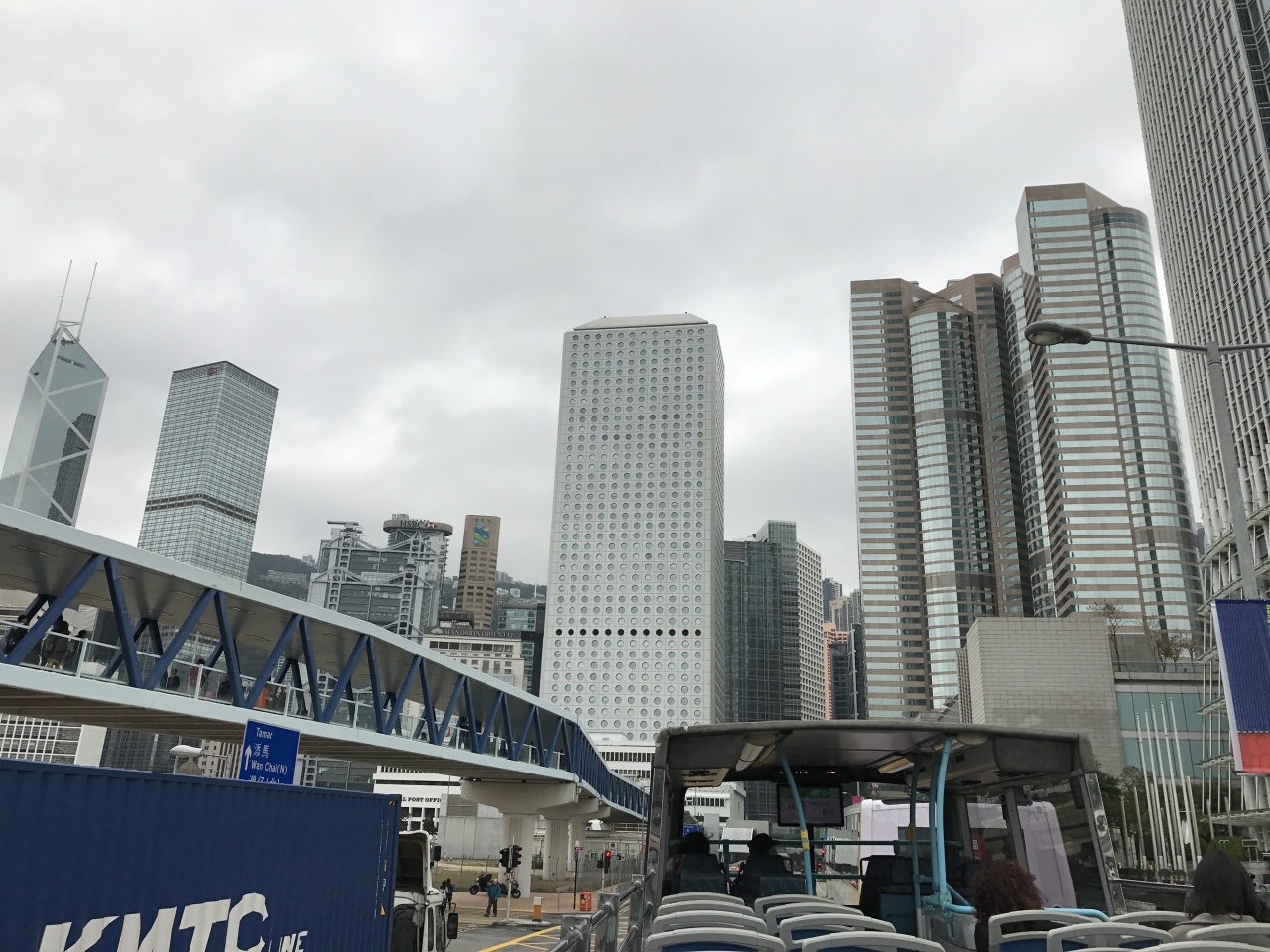ガイドはありませんが、ドライブ感覚で風に吹かれながら香港の街中を眺めるには最高です。
