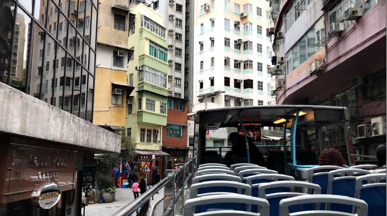 上環・中環の細い道もガンガン走るので、なかなかスリルがあります。