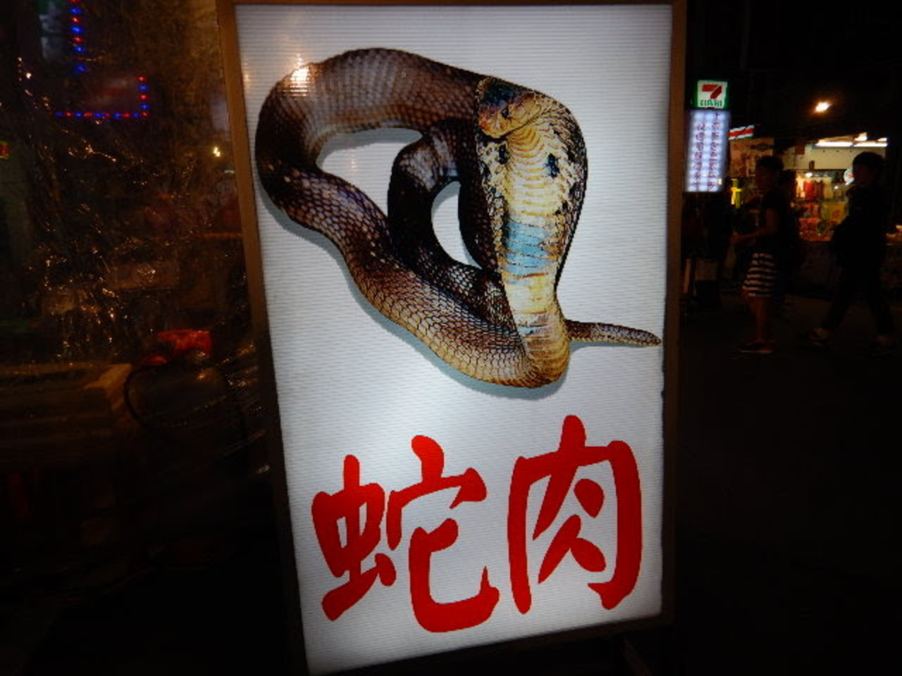 と聞きましたが、台北の夜市と比べると、それほど規模が大きいとも言えないかも^^; しかしあまり規模が大きくても回りきれないし人混みも辛い、、、という私には、ちょうどいいくらいの規模でした。ご飯がメインですが、雑貨も売っているし、マッサージもやっています。そして観光夜市には珍しい、蛇料理を扱うお店もありました!