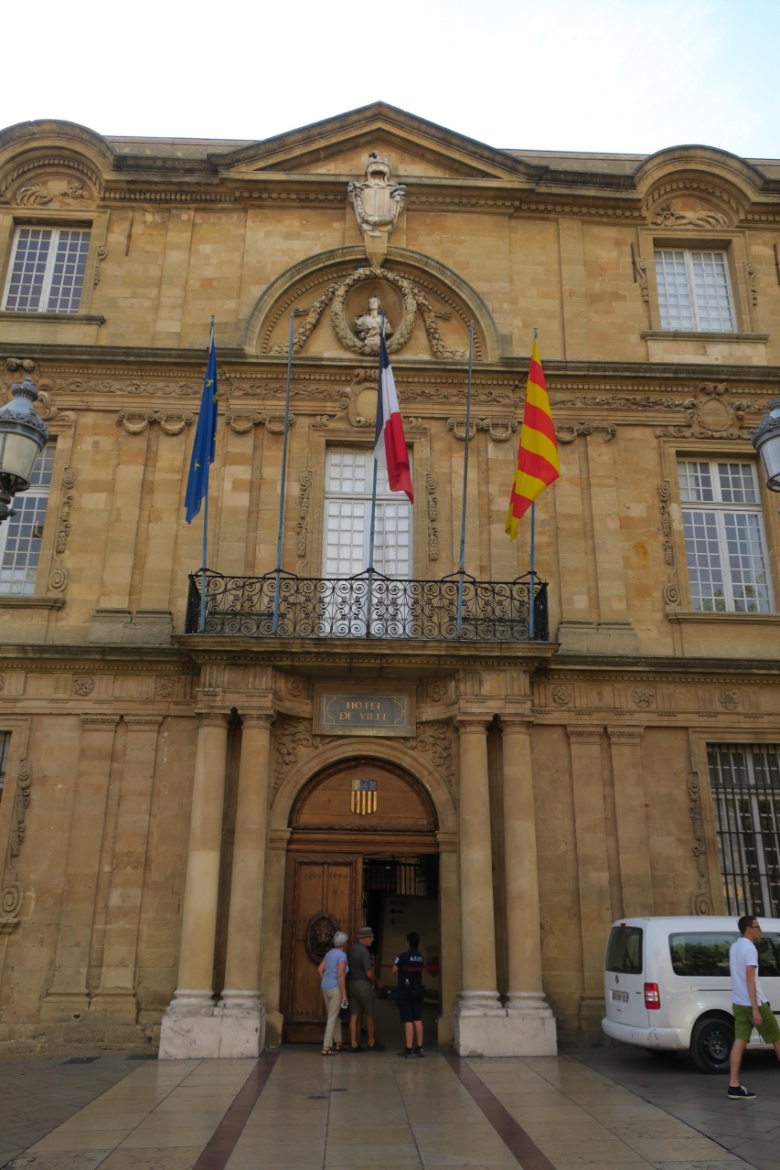 市庁舎は1670年にできたという歴史のある建物です。イタリア様式のファサードや木の扉の彫刻なども素晴らしいです。一番の見どころは旧時計台。時計の下の像が布一枚しかまとっておらず、ほぼ裸同然なのは夏だからだそうです。冬になるとちゃんと服を着ると地元の人がいっていました。