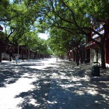 地下鉄14号線の大瓦窑駅から盧溝橋まで歩いて行く途中、宛平城を通りました。盧溝橋の東側にある、明朝に建てられた城壁でかこまれた屯兵用の都市で、のちに盧溝橋事件の発生現場となったところです。城壁の中に昔の町並みをまねた町並みがあり、土産物屋や食堂になっています。また、中国人民抗日戦争記念館も宛平城の中にあります。