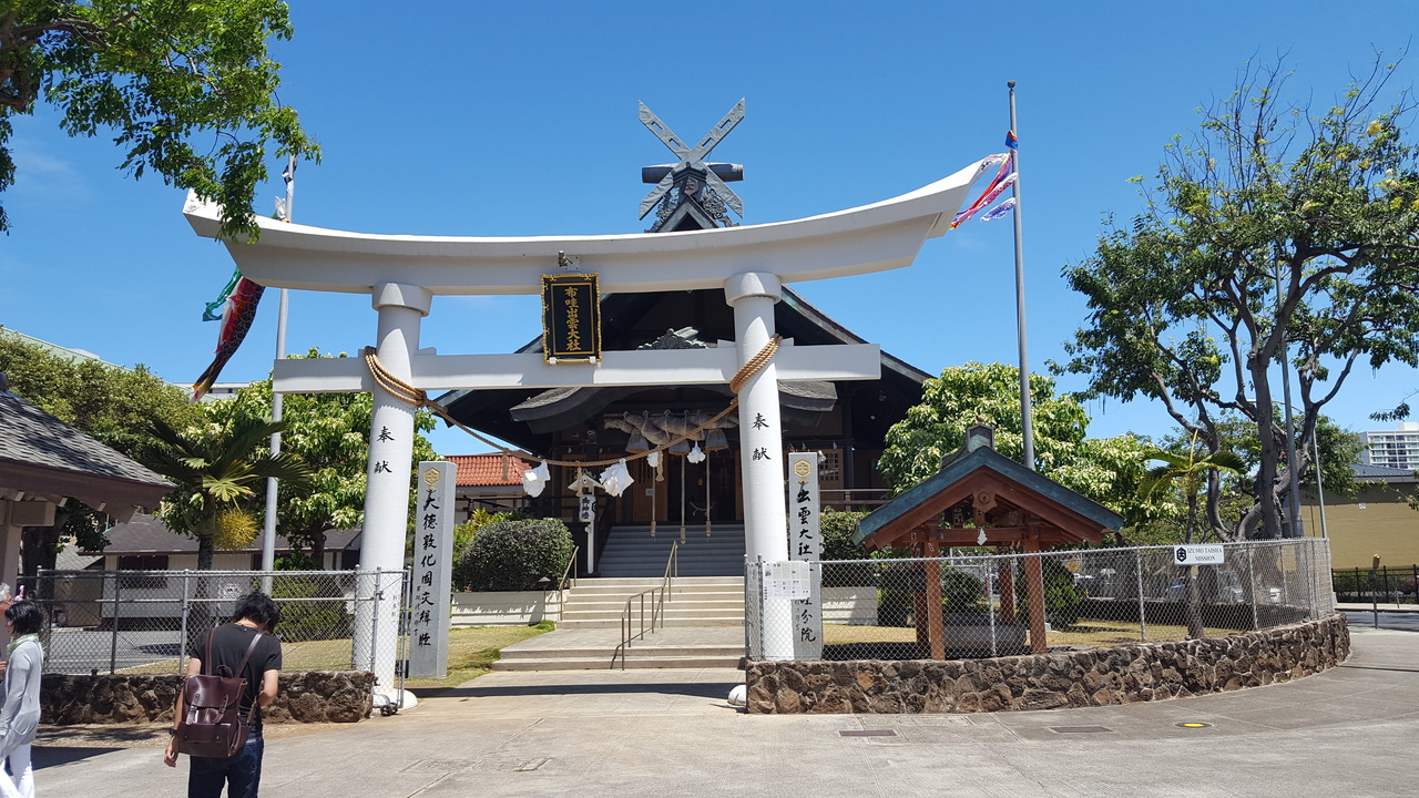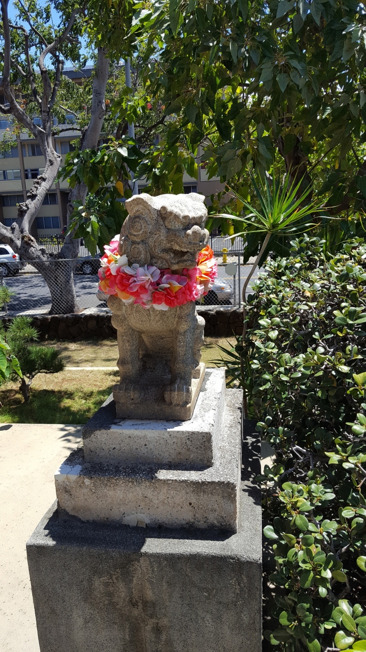 あの「モヤモヤさま~ず」で有名なハワイの出雲大社!!チャイナタウンのはずれにあります。白い鳥居にレイをかけた狛犬がハワイらしいです。縁結びに良いとの事で出会いのない友人にお守りをお土産に買っていったらすぐに彼氏ができました♡