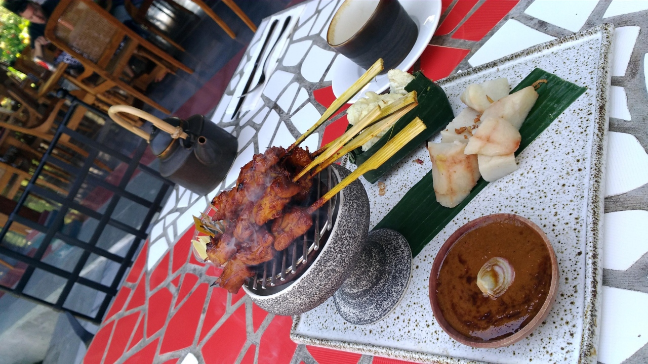 バリの王宮料理「ナシ・ラジャ」は、中心のご飯を中心にサテーやお惣菜がちょこちょこ入ってるセット。
