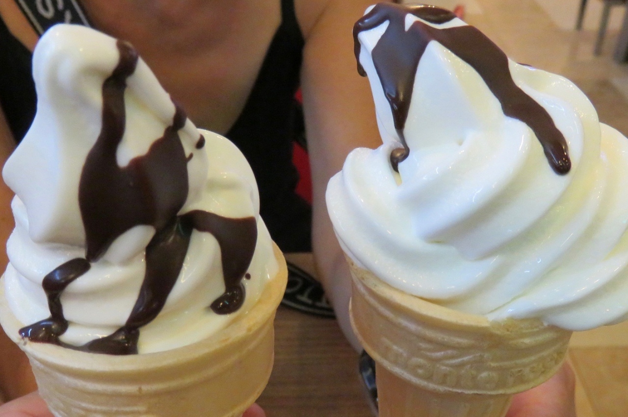 Truong Tien Plazaの1階にあるロッテリア。20時頃に行ったら夕食を食べている人達でなかなかの賑わい。バーガーやポテトにも惹かれたが、とりあえずソフトクリームを買って休憩。小さいけどチョコもちょっぴりかかっていて5000ドン(25円)。ちょっと涼むのには最適です。