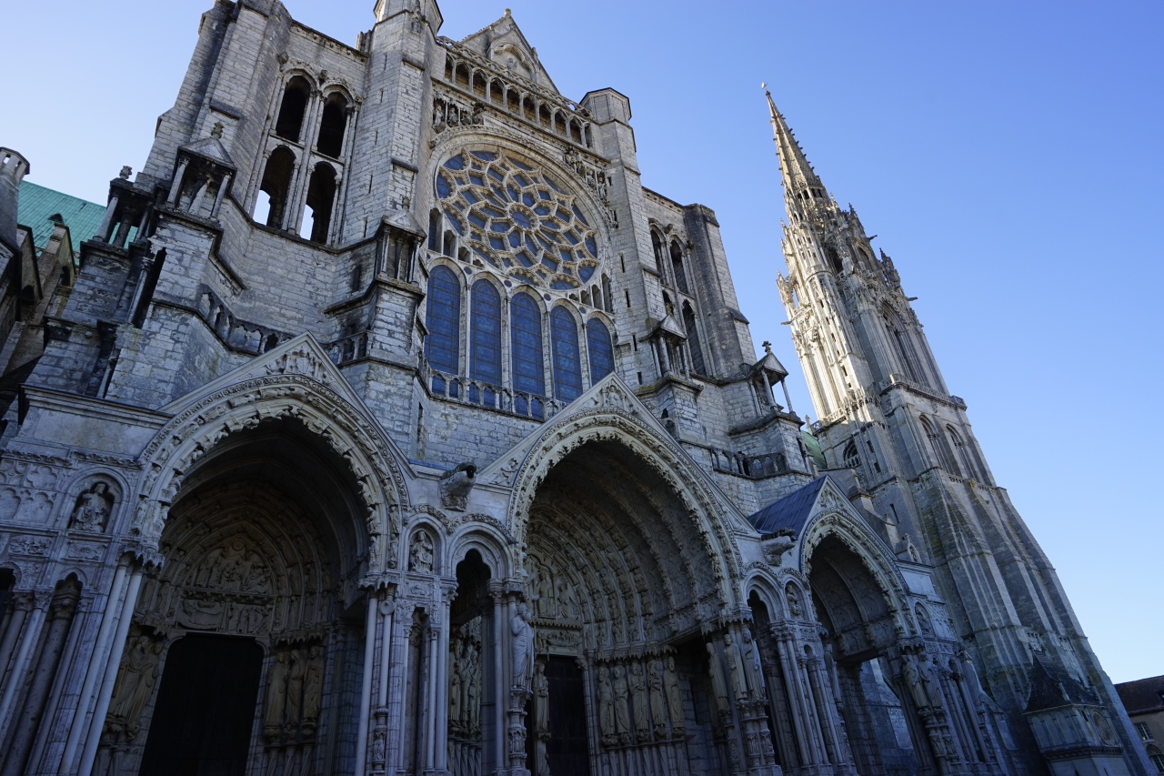 その深い青色が特徴的で、「シャルトル・ブルー」と呼ばれているそうです。また至る所に聖書をテーマにした彫刻があり、この大聖堂は「石でできた聖書」とも呼ばれているそうです。1時間半ほどの見学時間でその美しさを十分堪能しました。