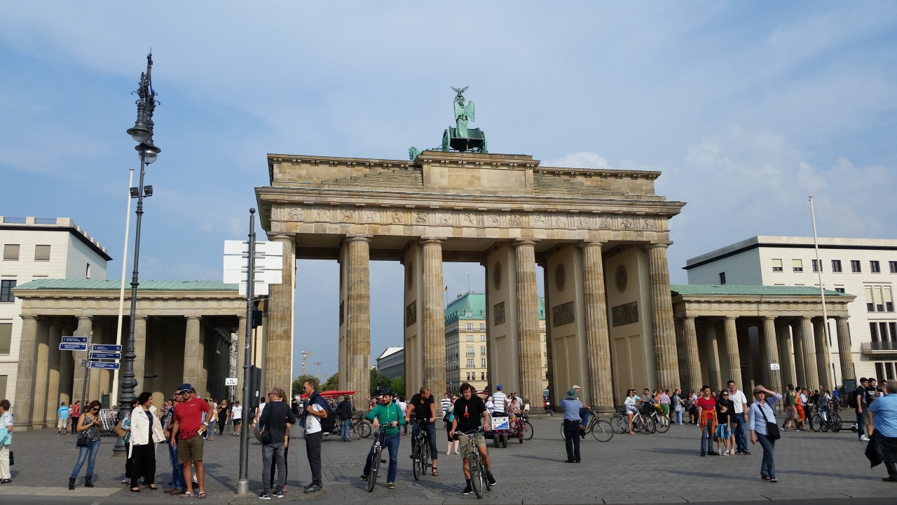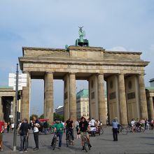 凱旋門、なのだそうですが、東西分裂の際には周りに壁が築かれて、通れなかったそうです。今は、面影がありませんが、昔は大変だったのですね。平和な世の中に感謝。門の上には勝利の女神と四頭の馬車があります。以前ナポレオンが持って行ったそうですが今は帰っています