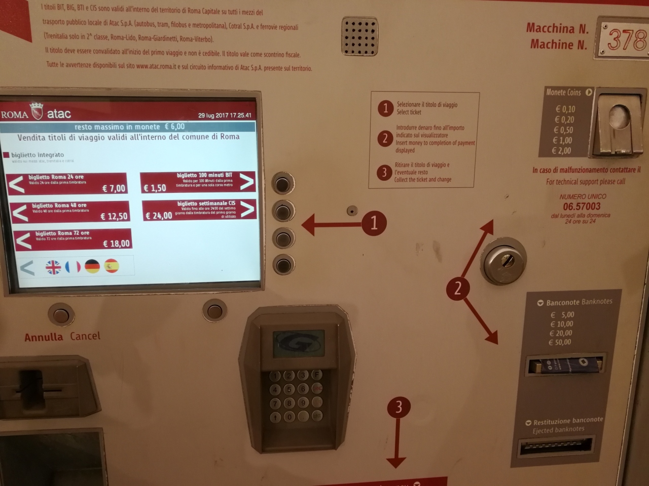 子供料金が分からなかったので最初抱け窓口で購入。10歳の子供は無料でした。その後は自販機で切符は買いましたが、とても簡単に買えます!あらかじめ小銭はたくさん持ってた方が、何かと便利です。スペイン広場、バチカン市国、コロッセオに行く時に利用しましたが、夕方のラッシュ時間は超満員で押し詰め状態でした。