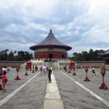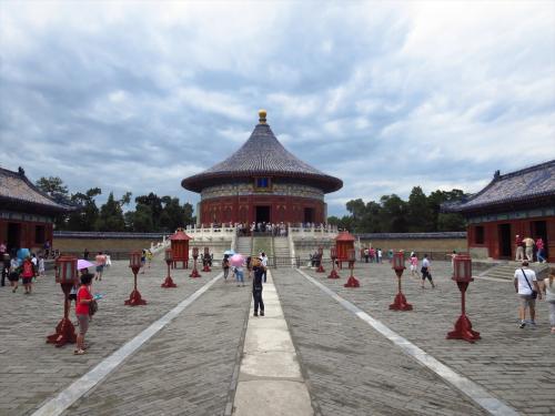 周りをぐるっと囲む回音壁は表面が堅く滑らかであり、微妙な曲線を描いているため、音が伝わりやすくなっているのが特徴です。そして東側にある東配殿は大明之神(太陽)、北斗七星、金木水火土五星、周天星辰などを祀り、西側にある西配殿は夜明之神(月)、雲雨風雷神を祀っています。中央にあるのが皇穹宇で円形ドームの天井が美しい建築、圜丘壇天庫の正殿です。皇穹宇と圜丘壇は観光客が多く混雑していました。