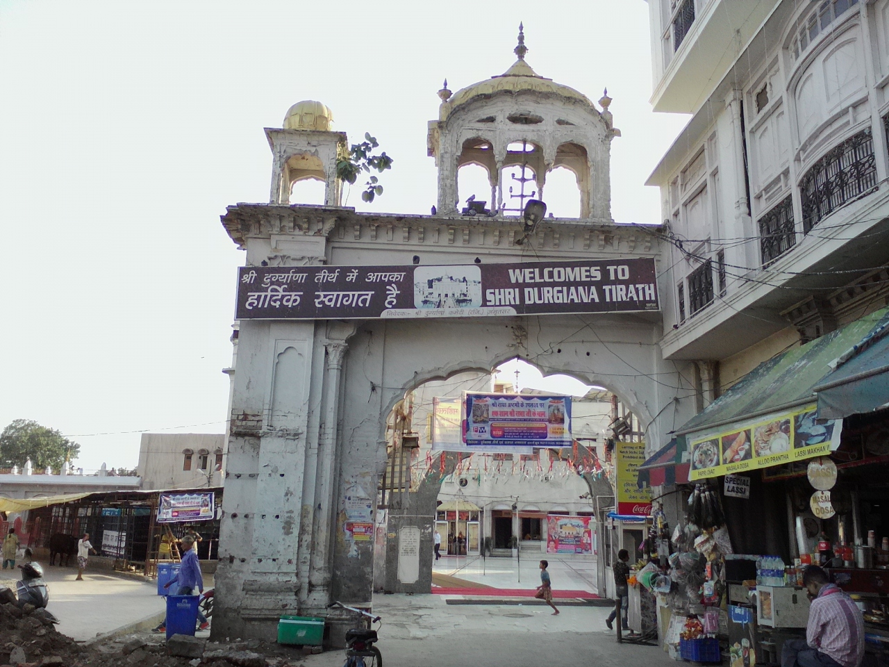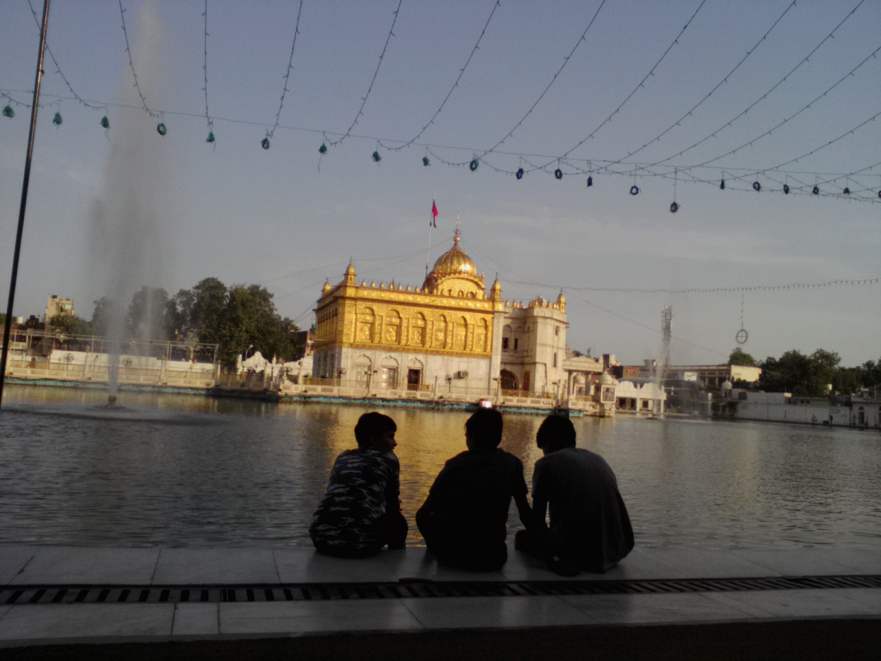 もっとマイナーな寺院かと思っていましたがなかなかどうして、かなり大きな寺院です。なんとゴールデンテンプルそっくりの造りです。なのでてっきりスィク教の寺院かと思ったらなんとヒンドゥー寺院でした。なので髪を隠す必要はありません。四角い池の中に建物がある造りはスィク教寺院独特のものかと思っていましたが違うんですね。訪れたのは夕方、人々が集まってくる時刻。夕涼みを兼ねて皆池の周りをそぞろ歩き。ゴールデンテンプルよりははるかにのんびりした光景に出会えます。