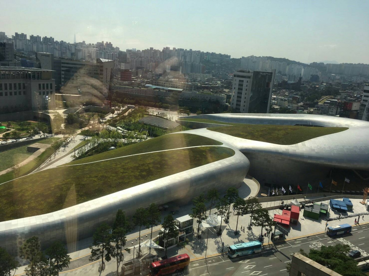東大門エリアに行ったことなくって 、夜ならライトアップされていて綺麗らしいので行きたかったのですが、午前中になりました。素晴らしい建物ですね。休めるスペースも沢山あるし、ショップや展示会なのもあるのでしょうね。今度は夜にショッピングかねて、行きたいエリアです。