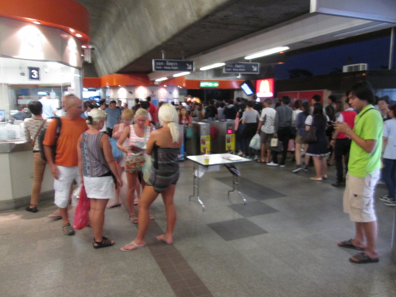 チャトゥチャック・ウィークエンド・マーケットの買い物が終了し、モーチット駅に戻ってきたのが18時過ぎ、マーケットのなかには17時頃で閉店するお店もありますが、それでも、駅に到着してマーケットに向かう人が多かったです。決してナイトマーケットではありませんが、土日はこんな感じでした。