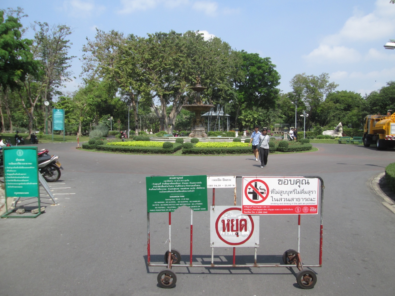 王宮・ワットポー付近にある公園です。王宮にはサナームルアンがあり、公園と言うよりは人工的に造られたような木陰がない広場のようですが、こちらは観光が終わり、休憩に利用できる場所でした。緑豊かで静かな場所で、定番の噴水もありました。