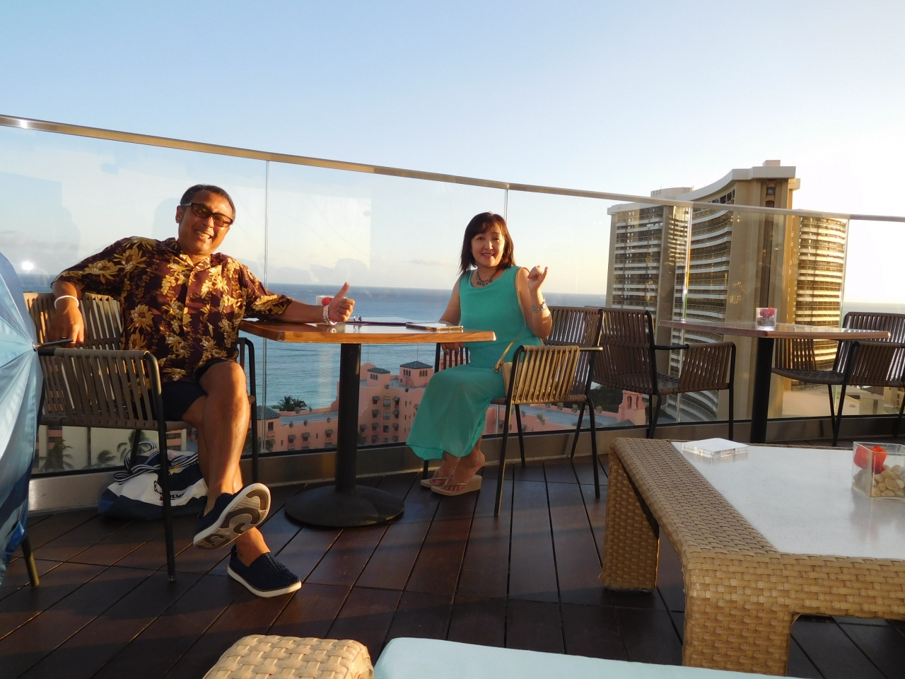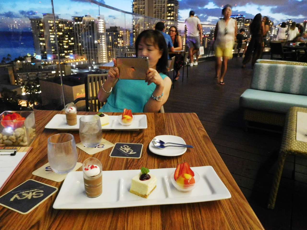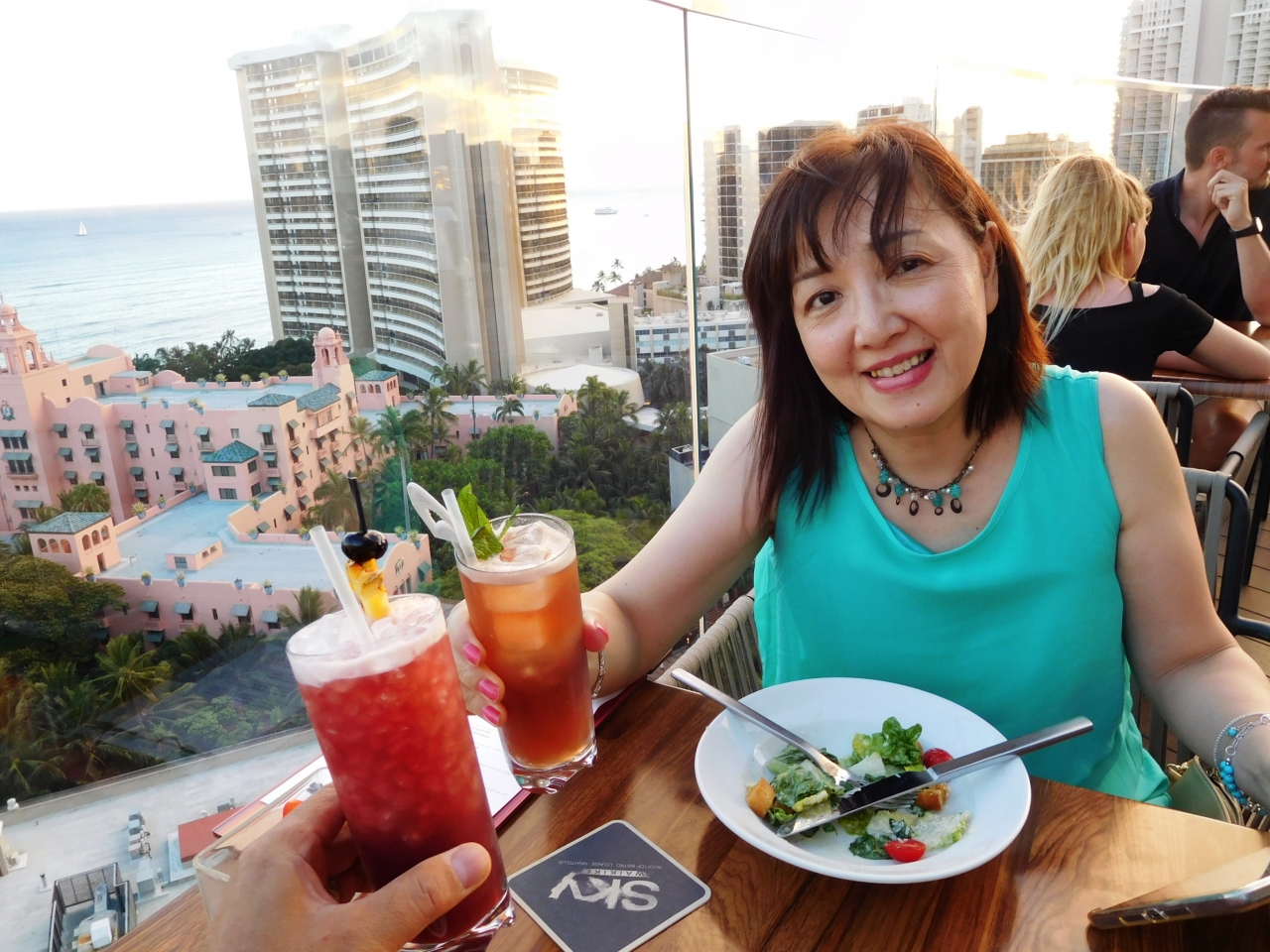 素晴らしいワイキキタウンの展望で食事。スカイワイキキ