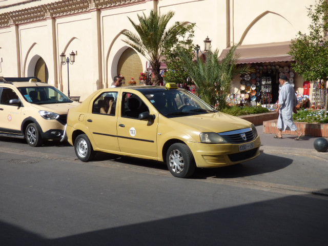 本当にモロッコを旅行していてタクシーは色で分かりやすい。ヨーロッパでも同じような経験をしていますが、とくにモロッコは街による特徴がはっきり。マラケシュは黄土色のような渋い色。それでも遠くからでも見つけやすいデザインだと思います。