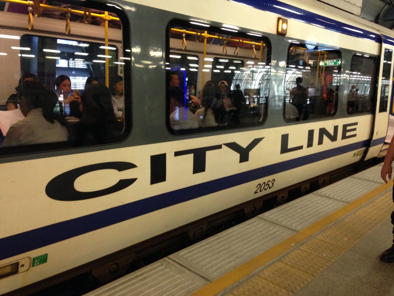 早朝便で空港について市内に移動で乗りました空港からの一駅間だけは乗客も少なくゆったらしていましたが隣の駅からは結構、乗ってきました。きれいな京成みたいな感じでスーツケースを持った人も多いけど一般客も多いかったです。子供と言っても身長140cmのこと乗ったらカップルが席を譲ってくれました。