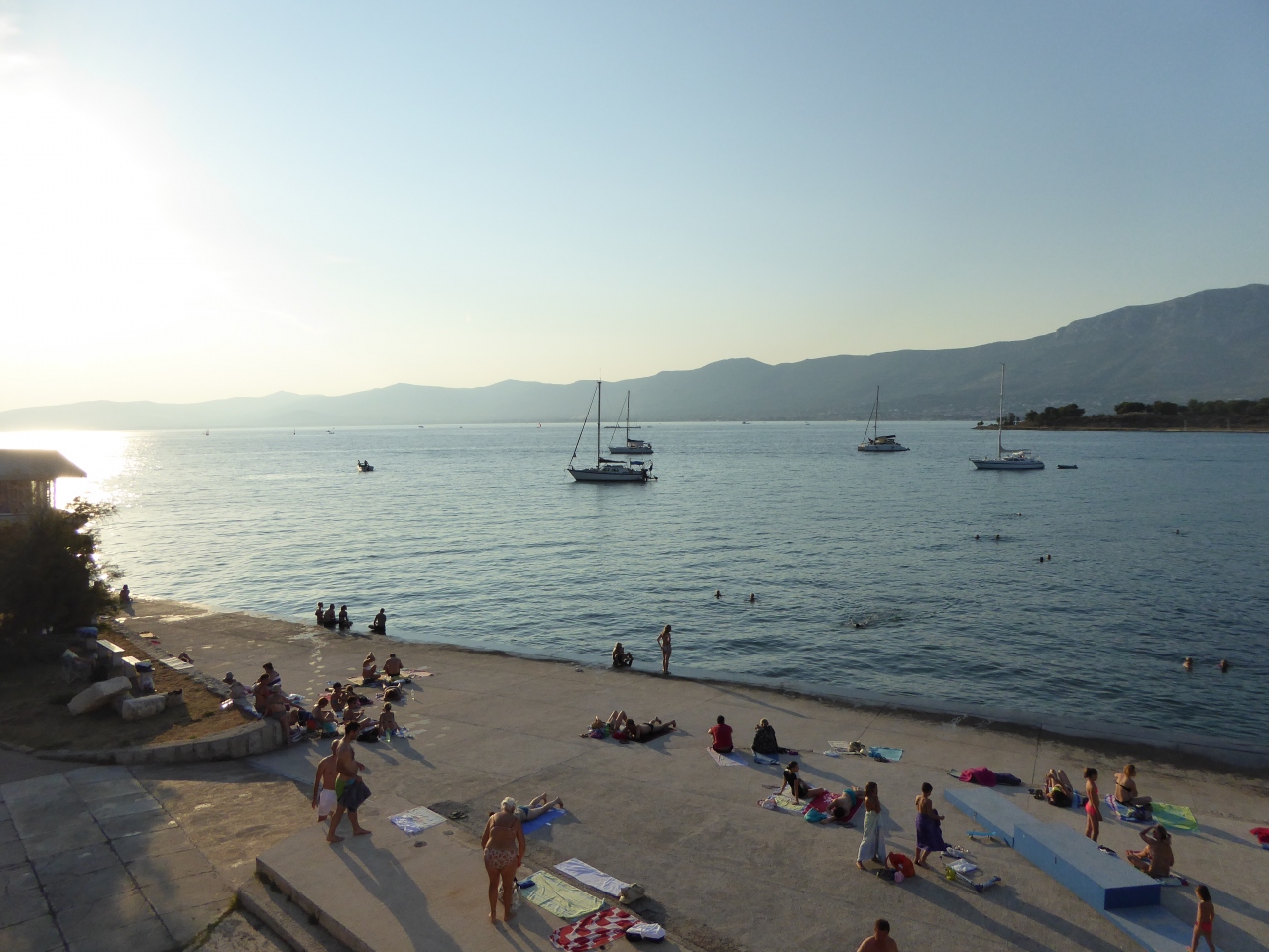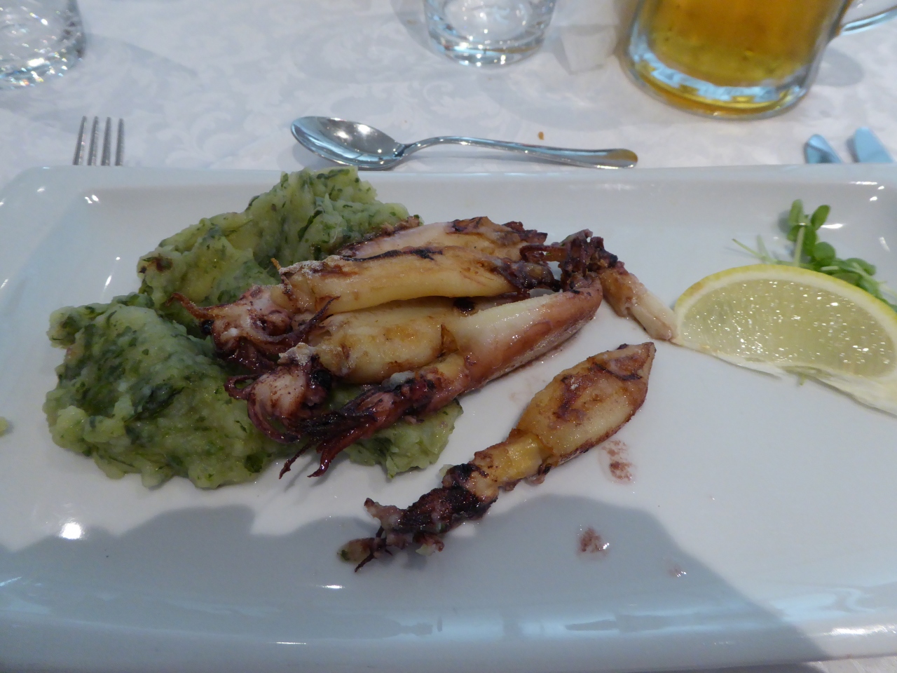 イカのグリルを食べました。日本で食べるのとほとんど変わらない味付け。デザートのアイスも美味しかったです。ベランダから海水浴をしている人を眺めたり、夕日が沈むのを見たりして食後もリラックスして楽しめました。