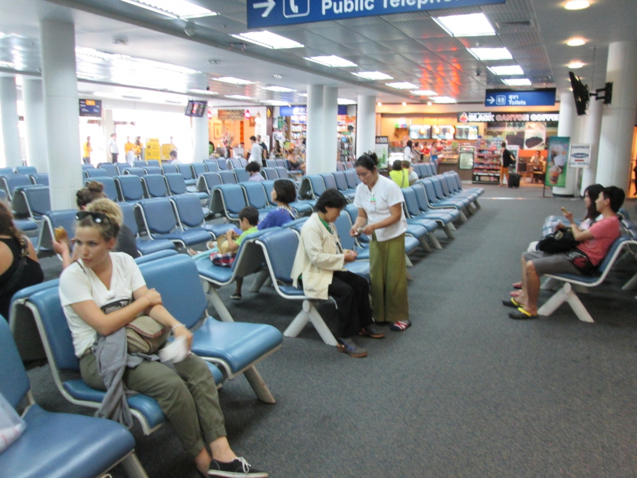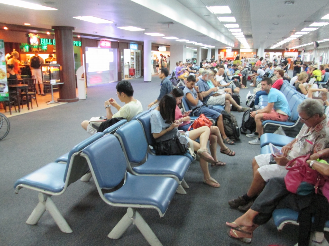 チェンマイ空港国内線ターミナルの出発階は保安検査場を過ぎるとすぐのところに搭乗口があるレイアウトになっていました。大きい1つのエリアにただ椅子が並べられていますが、自分が搭乗するフライトとは関係ない各搭乗口の案内がずっと流れており、少しうるさくくつろげなかったです。