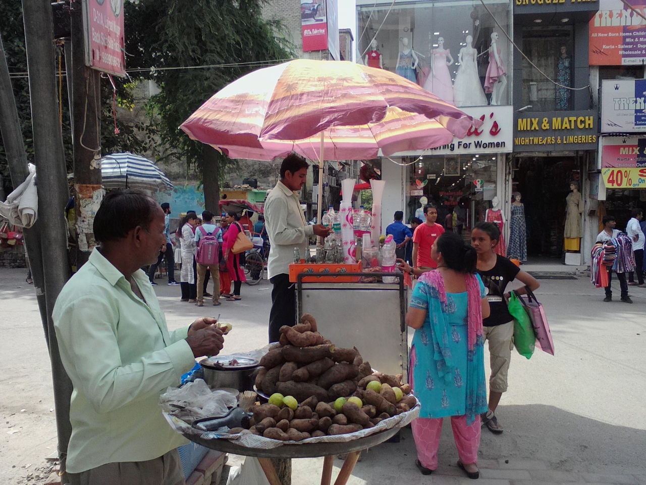 デリーメトロ、バイオレットラインのLajpat Nagar駅東側に広がる商店街。駅から3分ほど歩いたセントラルマーケットは特に商店が密集しています。中心部は車両乗り入れ禁止(一部バイクはok)になっているのでとっても静か、町並みもそこそこ清潔で歩きやすいです。インドのカオスを求める方にはもの足りないかもしれませんが、屋台も出ておりのんびりぶらぶら買い物ができます。