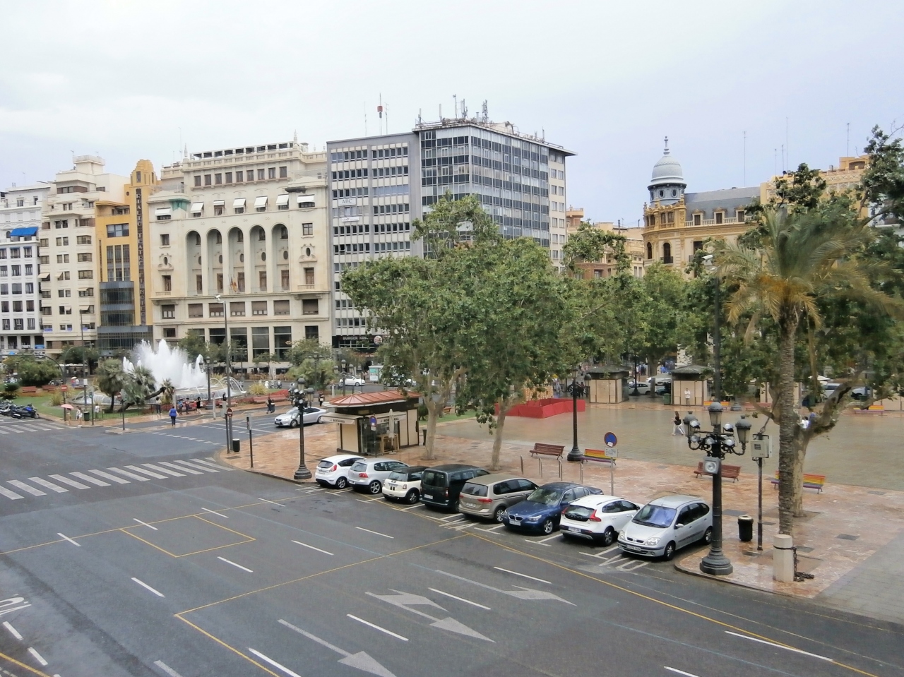 バレンシア・ノルド駅から旧市街に向けて北へ200mほど行くと右手に広場があらわれます。広場の中央を道路が横断し、南側がメインの広場です。北側は狭いエリアですが、大きな噴水がありました。
