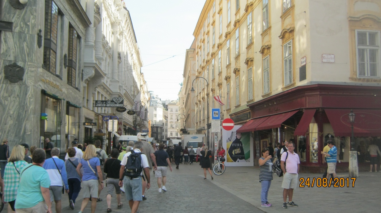 ミヒャエル広場から北へのびる通りです。ゲラーベン通りに出ます。この短い通りには魅力的なカフェやレストランが多くあります。またショッピングの店もあります。店が迫ってくるような感じで楽しみながら散策ができます。