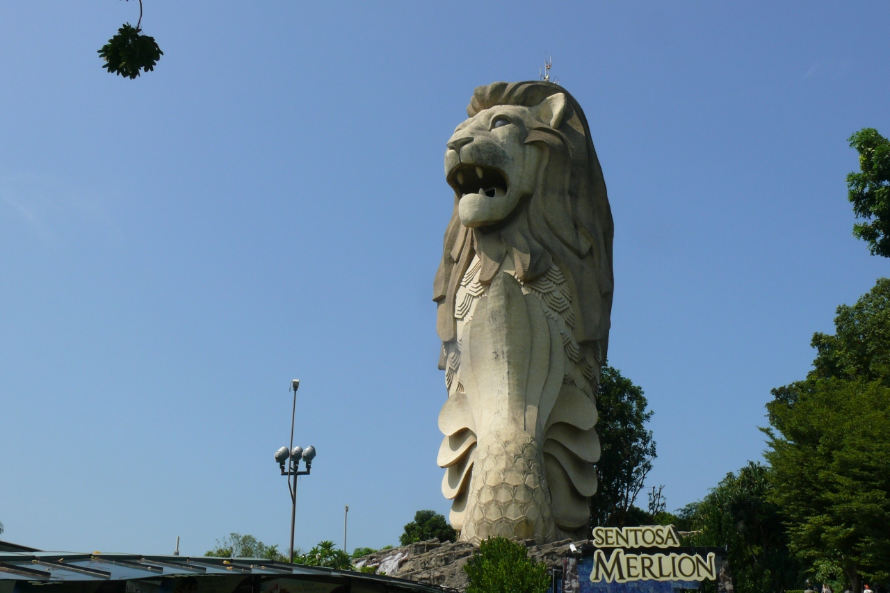 セントーサエクスプレス、インビア駅から歩いてすぐのところにある、セントーサ島のマーライオンです。