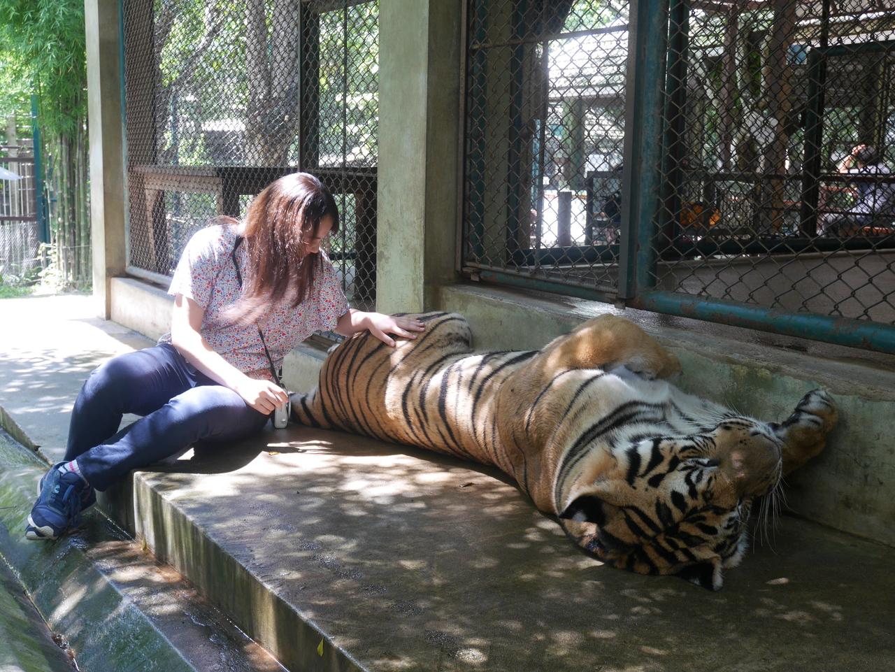 人生でトラと触れ合える日が来るなんて…!自分の目の前でトラたちがじゃれ合っている姿はとても可愛かったです。トラに抱きついて写真も撮れます。7人の団体で行きましたが、飼育員と一緒に入って自分達で写真を撮りあいました。最高の思い出になりました。
