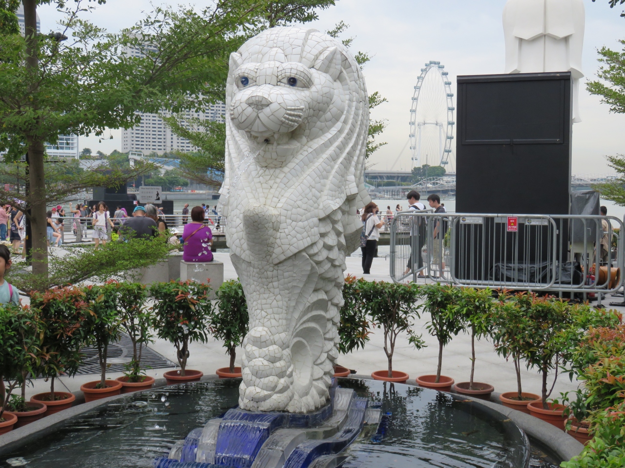 シンガポールのシンボルであるマーライオンが2体ある公園で、シンガポールの伝説の動物マーライオン(頭が ライオンで体が魚)の像が設置されている公園とマリーナベイサンズホテルが見れる絶景の観光スポットでした。やはり観光客も多く大変な賑わいでした。