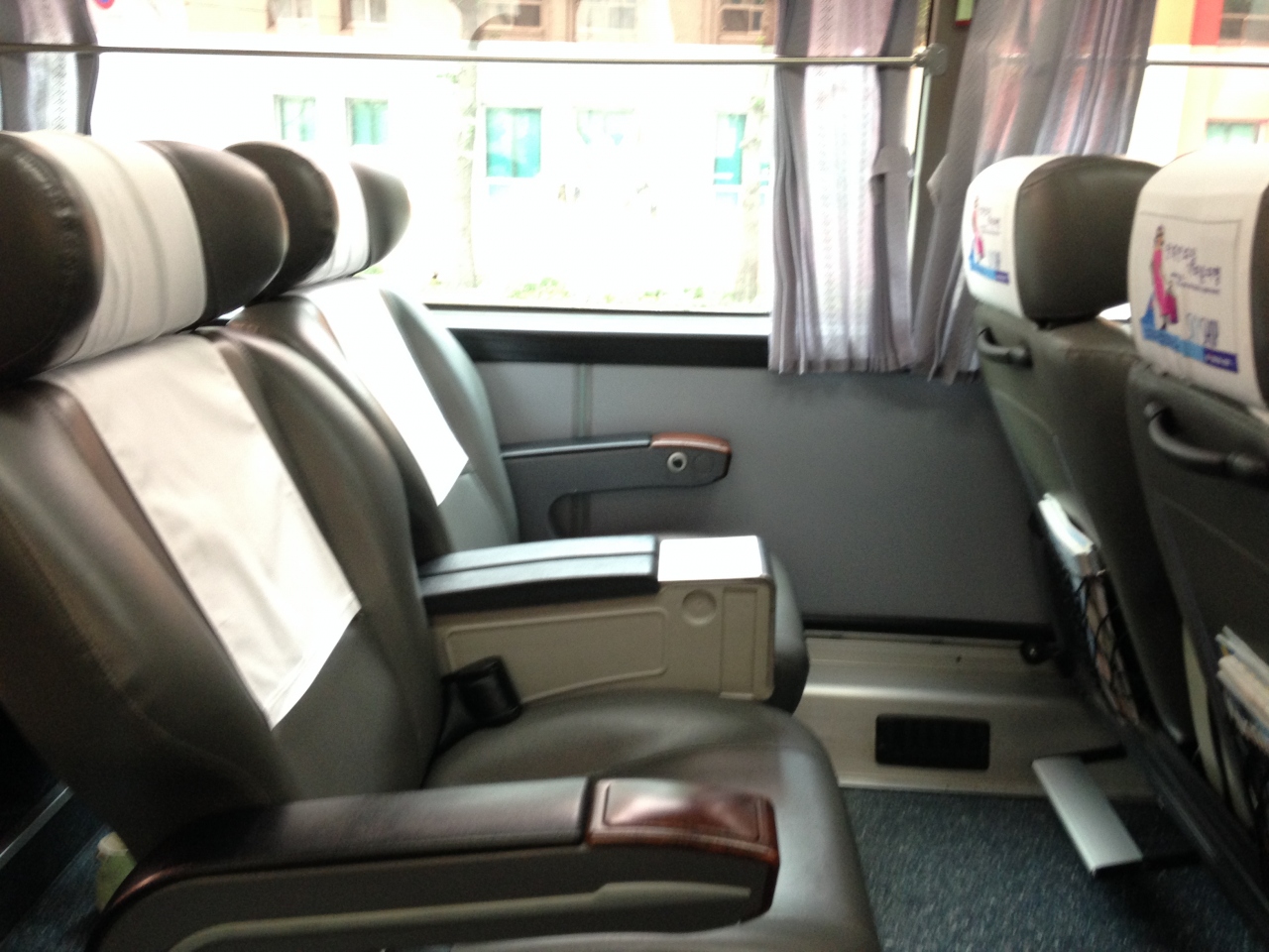 1列3席でデラックスなつくりでした、だからか高い感じがしました。こまめに出ているので便利、日曜日の夕方便に乗りましたが5人くらいしか乗っていませんでした。ロッテホテルで乗車券の購入は可能ですが子供のチケットは取り扱いがなく運転手から現金で購入となりました。