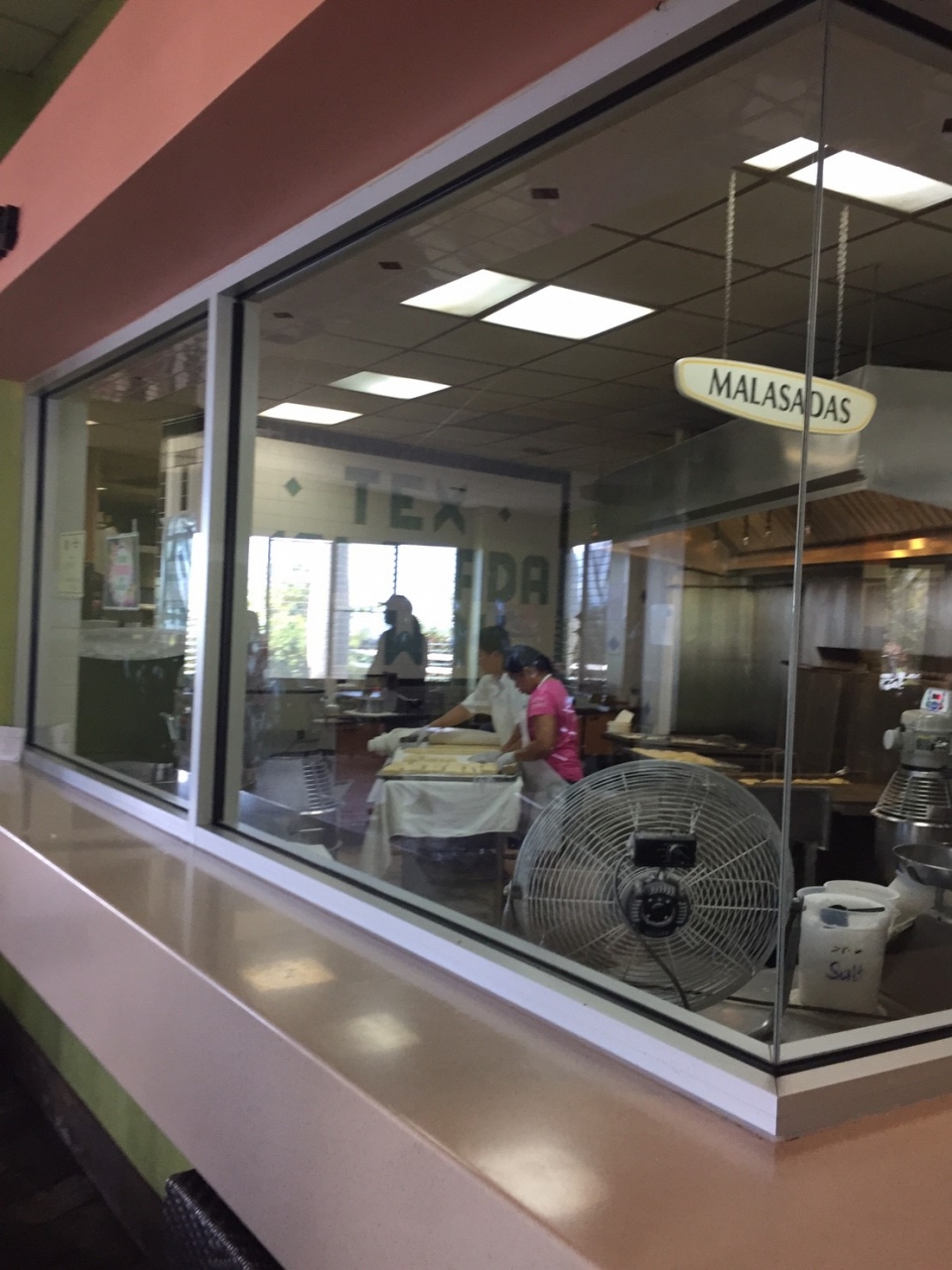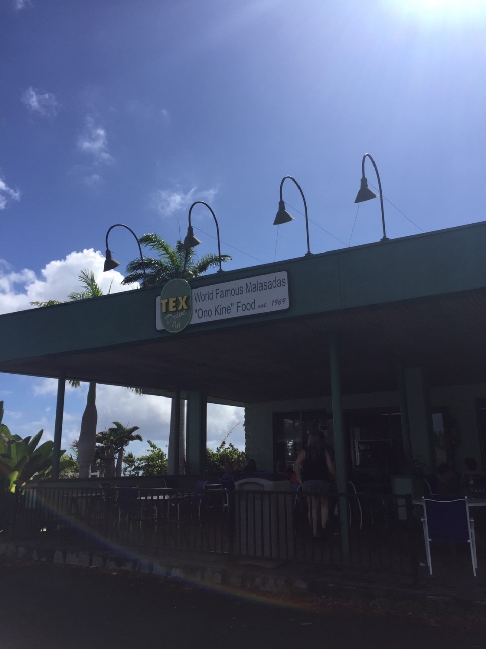 ビスタ・ワイコロアを朝早く出てワイメアのファーマーズマーケットでの買い物を終えてホノカア観光へ行く途中で立ち寄り名物の「マラサダ」を食しました。