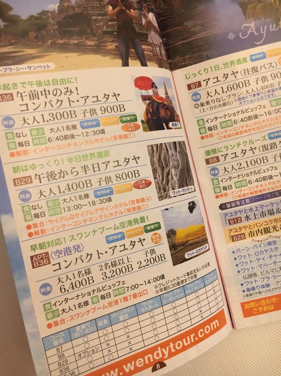 この旅は親が一緒だったため、バンコクからウェンディツアーの「午後からアユタヤ半日」に参加してきました。