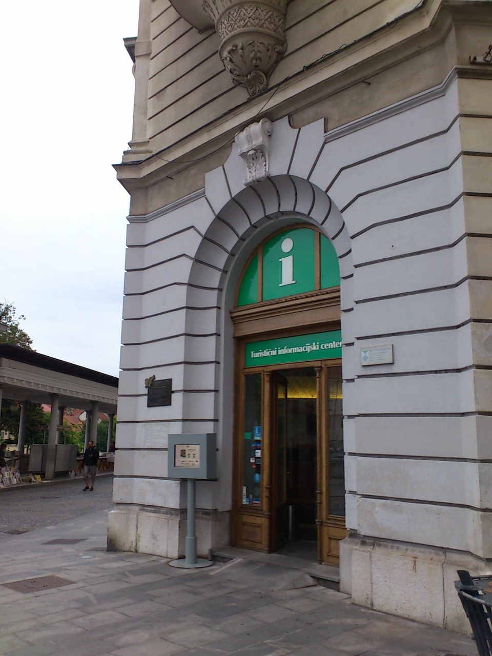 聖フランシスコ教会の前い広がるプレシェーレノフ広場を横切り、三本橋トロモストヴイエを渡って反対岸に弥と、すぐの場所にこの観光案内所がありました。大きなiマークがあるので、すぐにわかると思います。ここで無料の市内地図を入手することができるので、まずはここで地図を入手する事をお勧めします。