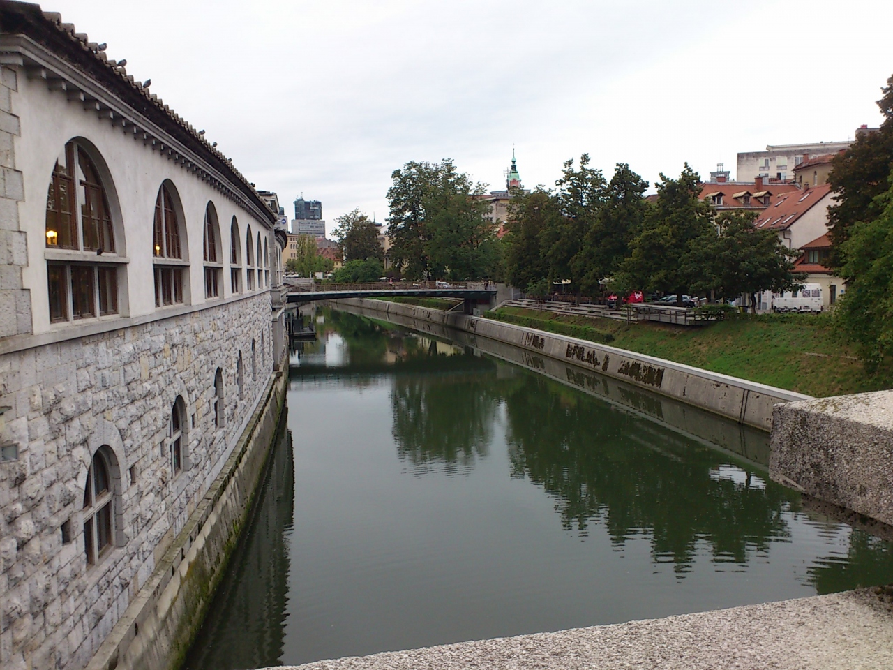 リャブリャナ市内を貫通する川です。リャブリャナの1番の見所の三本橋トロモストヴイエが架かっているのは勿論の事、その他にも竜の橋、ブッチャーズ橋・シューメイカーズ橋などそれぞれに特徴のある橋が掛かっているので、橋めぐりをするのも面白いと思います。両岸にはカフェが並び、オープンテーブルで多くの人がお茶をしていました。クルージングもあるようですが、時間の関係で乗ることはできませんでした。