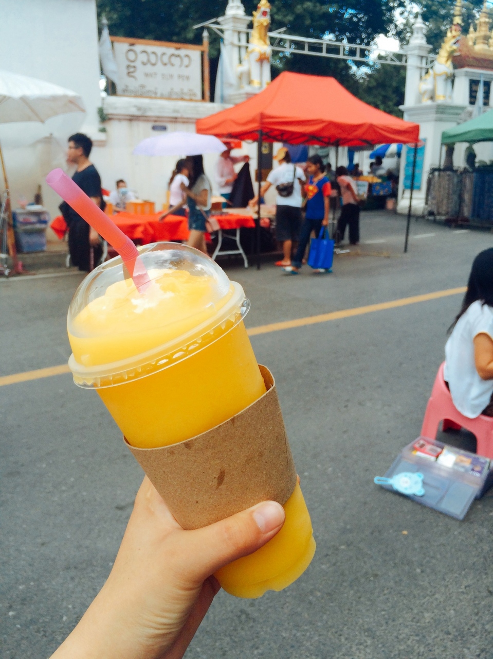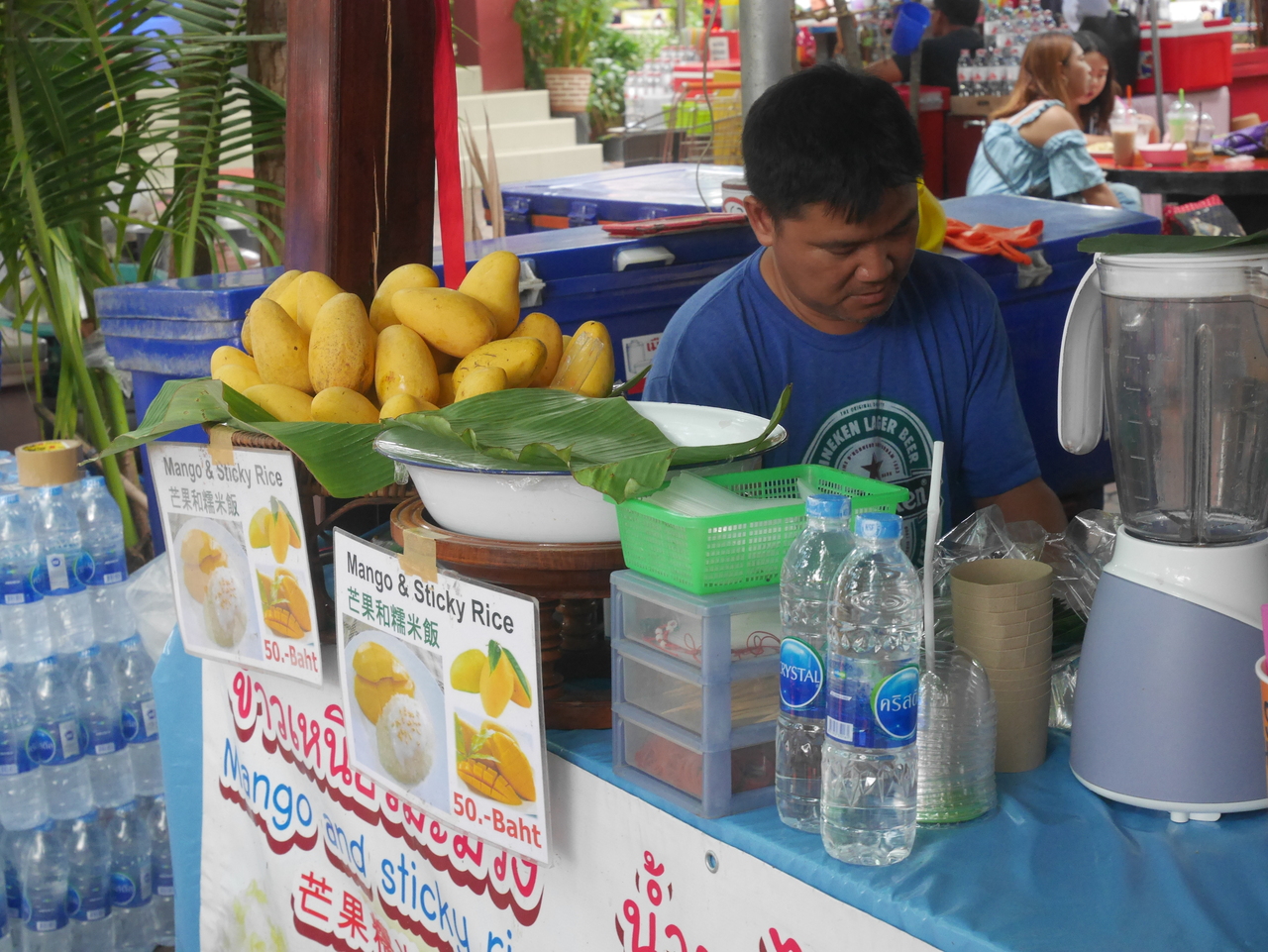 道の両端に多くのお店が並んでいて、雑貨、タイパンなど安く手に入れる事が出来ます。個人的にはお花の石鹸がとても可愛くてお土産に沢山買いました。マンゴーをその場でカットして作ってもらったシェイクはマンゴー好きにはたまりませんでした!!美味しかったです!