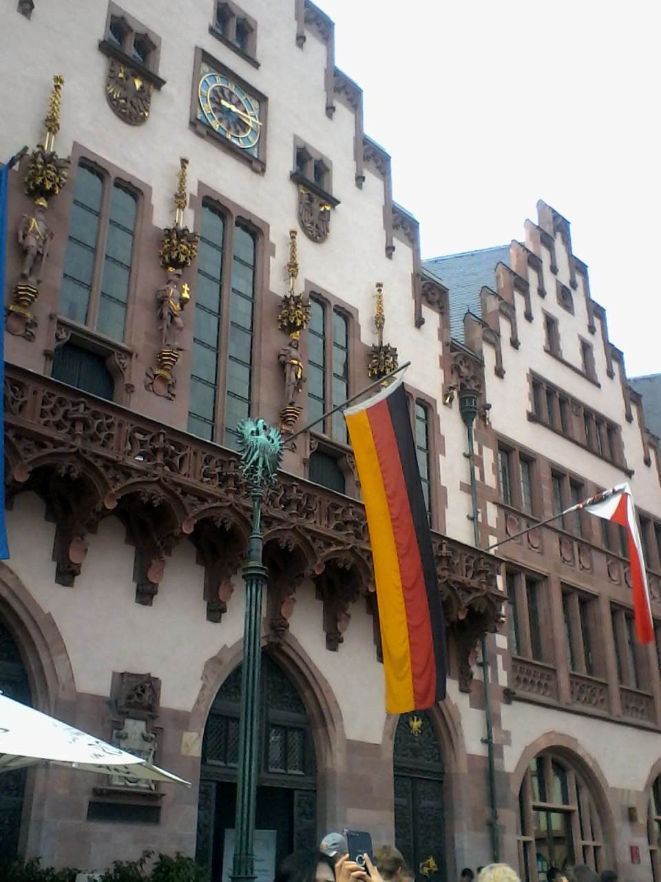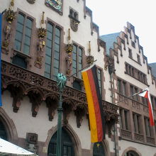 フランクフルト旧市庁舎は、レーマー広場にあります。ピンクと茶色の外観は、広場の色調と合っていて、素敵です。