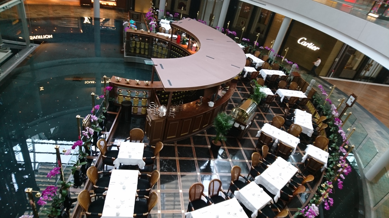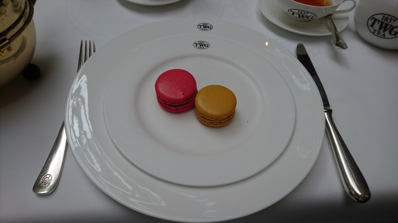 ホテルからフードコートに向う途中にあります。とても雰囲気が良く、10時のオープンと同時に入りました。メニューの紅茶の種類がとてもたくさんあるので、結局自由が丘の店舗でもいただいた1837ブラックティーにしてしまいました。香りもよく、やはり美味しかったです。すぐ近くにあるトーストボックスでカヤトーストを食べたばかりだったので、私は紅茶とマカロンにしましたが、レモンなど柑橘系のマカロンは美味しかったです。夫は店員さんのオススメの紅茶を注文し、他にスパニッシュオムレツを注文したので一口もらいましたが、こちらも美味しかったです。お値段は安くはなかったと思いますが、雰囲気はとても良いです。