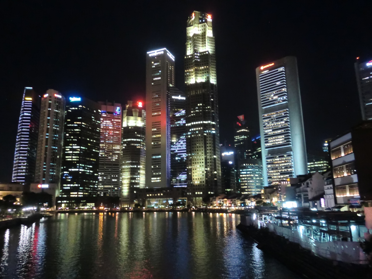 シンガポール川近くにあるビジネス街で、超高層ビルが並んでいる様子がアジアの発展を物語っているようです。