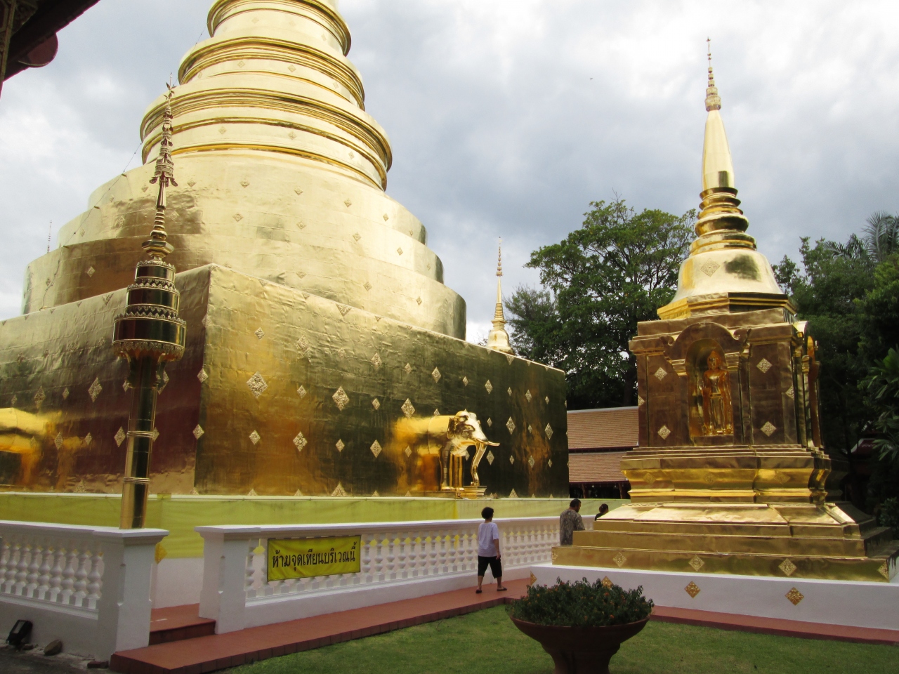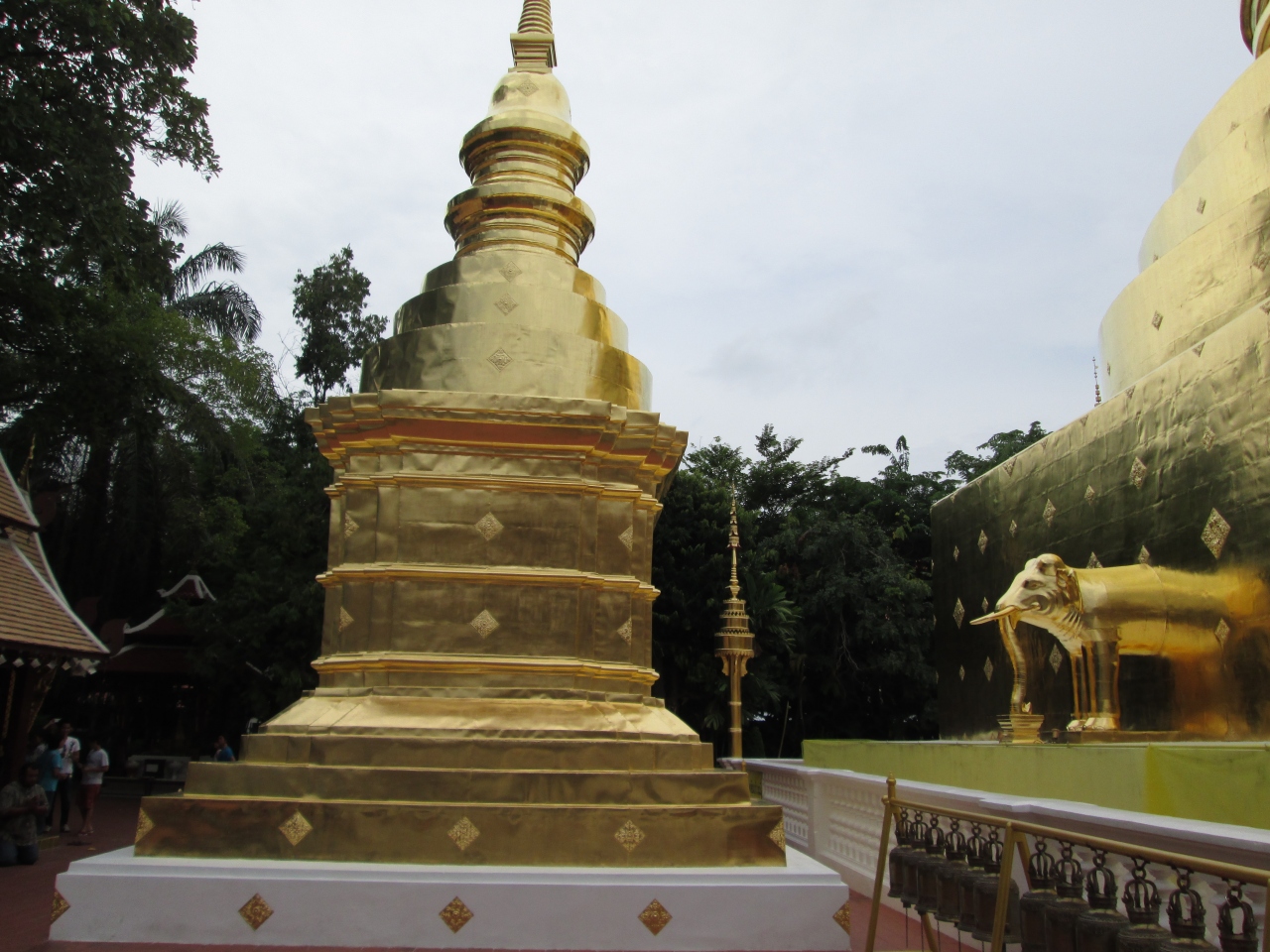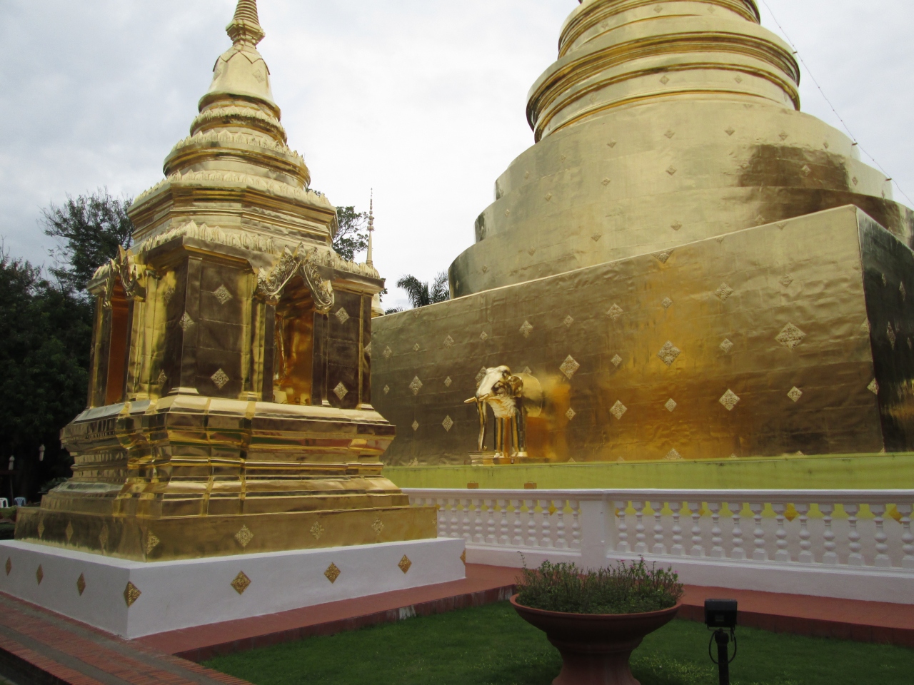 ワットプラシンには金色に輝く仏塔があるのが特徴的でした。当然ですが本物の金ではありませんが、チェンマイの寺院にある仏塔のなかでは、異常にピカピカでした。おそらく、ここの仏塔は毎朝きれいに掃除され、つねにピカピカにしていると思料します。