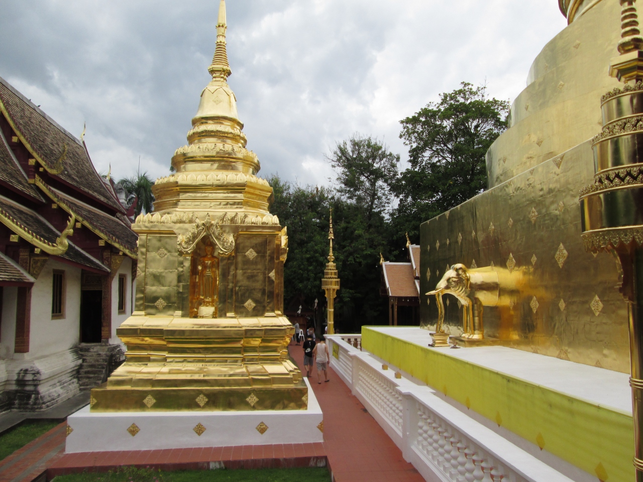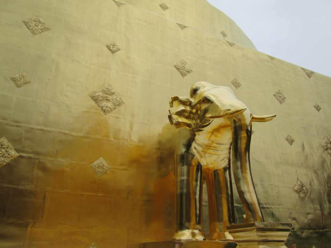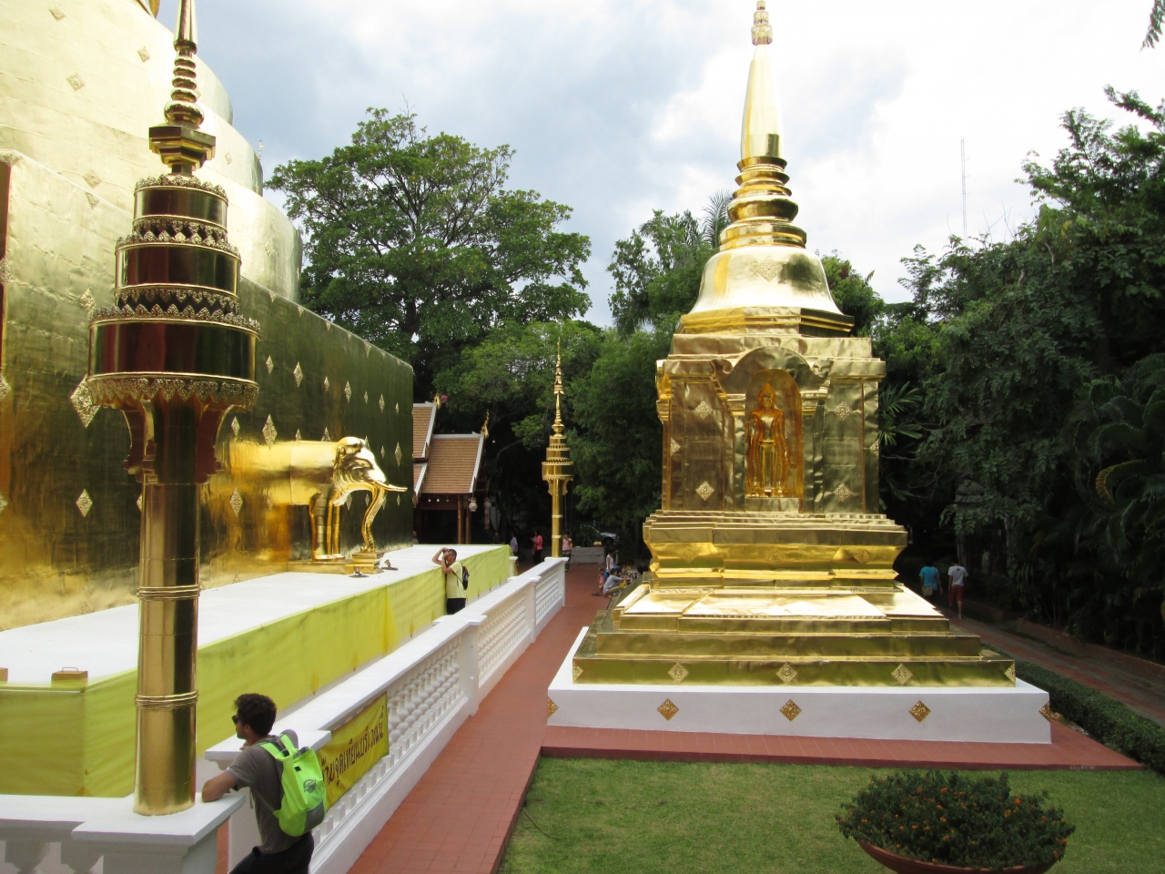 ワットプラシンには金色に輝く仏塔があるのが特徴的でした。当然ですが本物の金ではありませんが、チェンマイの寺院にある仏塔のなかでは、異常にピカピカでした。おそらく、ここの仏塔は毎朝きれいに掃除され、つねにピカピカにしていると思料します。