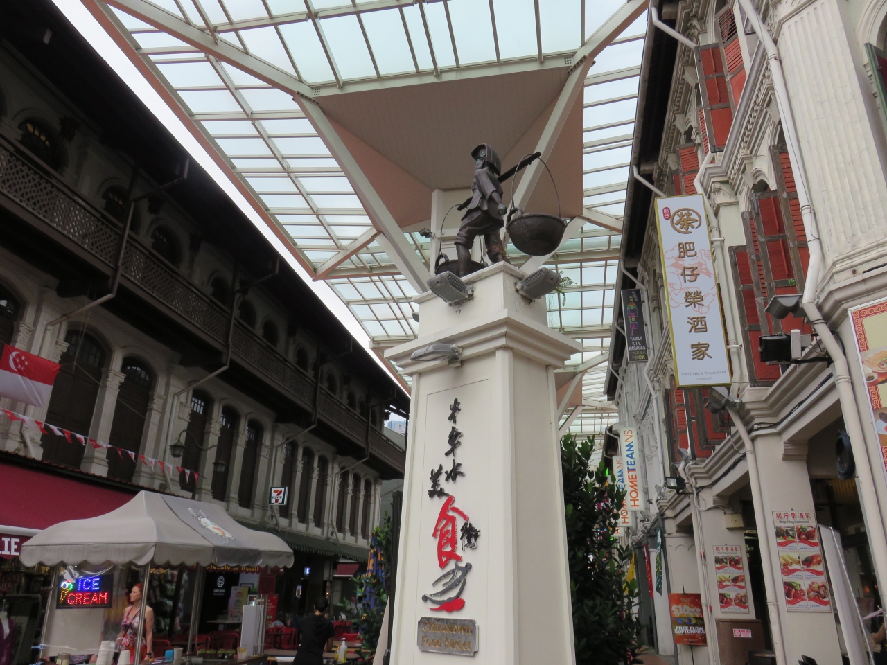 チャイナタウンの中心部にある、ひときわ中国色が濃い通りで、漢方薬や乾物、仏具などを売るお店が並んでいました。料理が充実していて、麺類やサテー、中華スイーツの屋台が人気のようで、屋台の脇にあるショップハウスにも「蘭州拉麺」をはじめとする中華料理のお店が入っていました。暫し異国情緒を楽しむ事ができました。