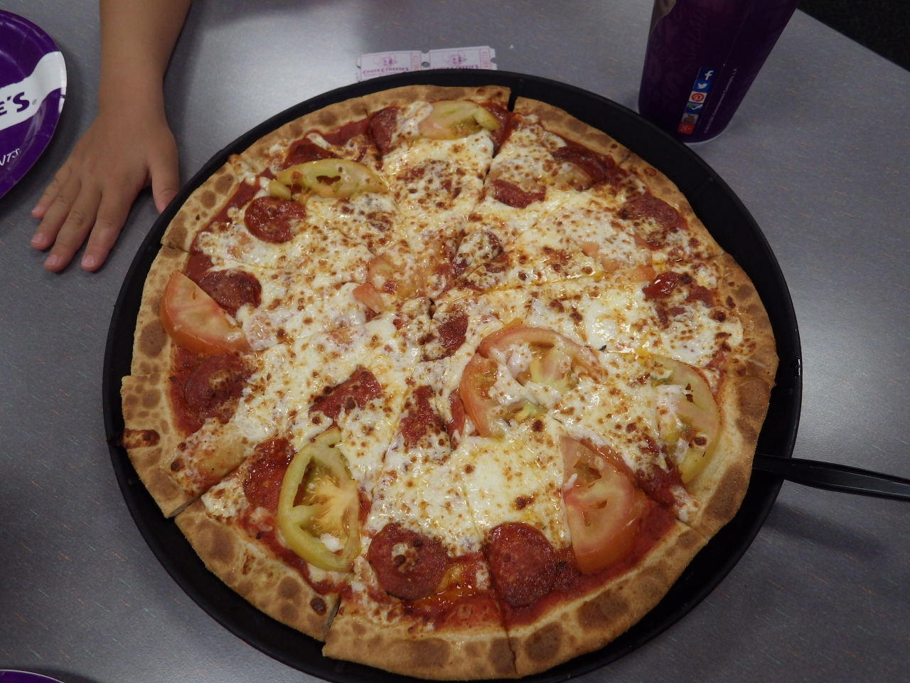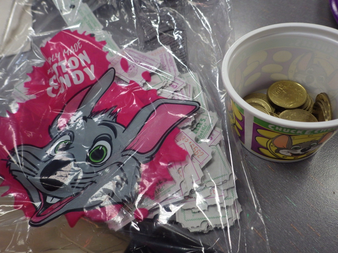 ピザとドリンクのセットを買って、ついてくるゲーム用コインでじゃんじゃかゲームして遊び、点数に応じてもらえるチケットを集めて景品に交換するという店。