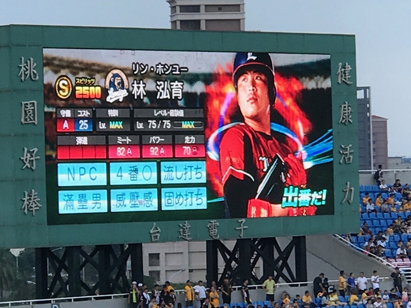 桃園Lamigo(桃猿)と中信兄弟の試合で、当日券は内野が売り切れで外野席のみでした。