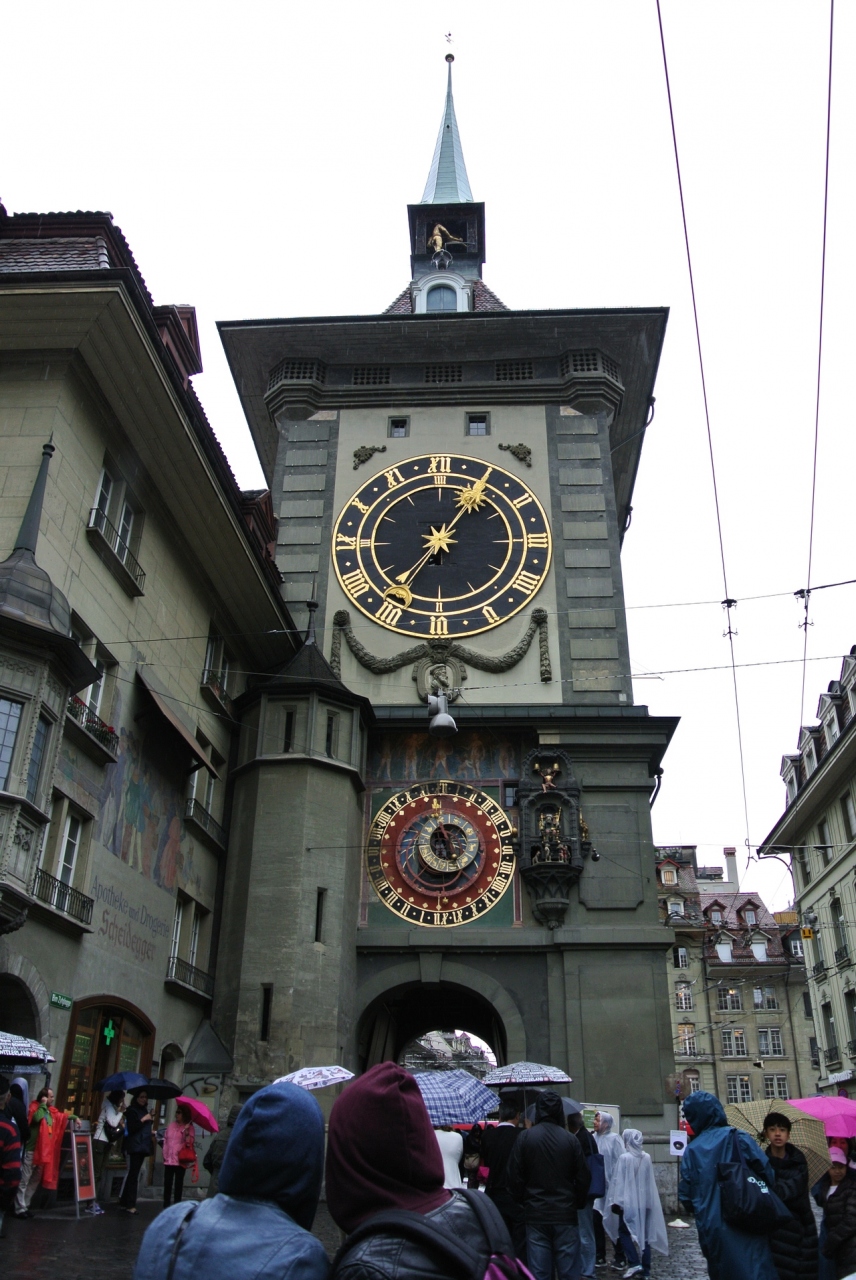 毎正時4分前からからくりが動く仕掛けになっています。時計は大きいのにからくりの仕掛けが少し地味だなと思ってしまったのですが、13世紀からある時計搭だとのことで、素晴らしい歴史のある時計搭です。からくりが動く時間にはたくさんの人が集まります。ベルン駅からは徒歩15分くらいです。トラムだと5分くらいで着きます。