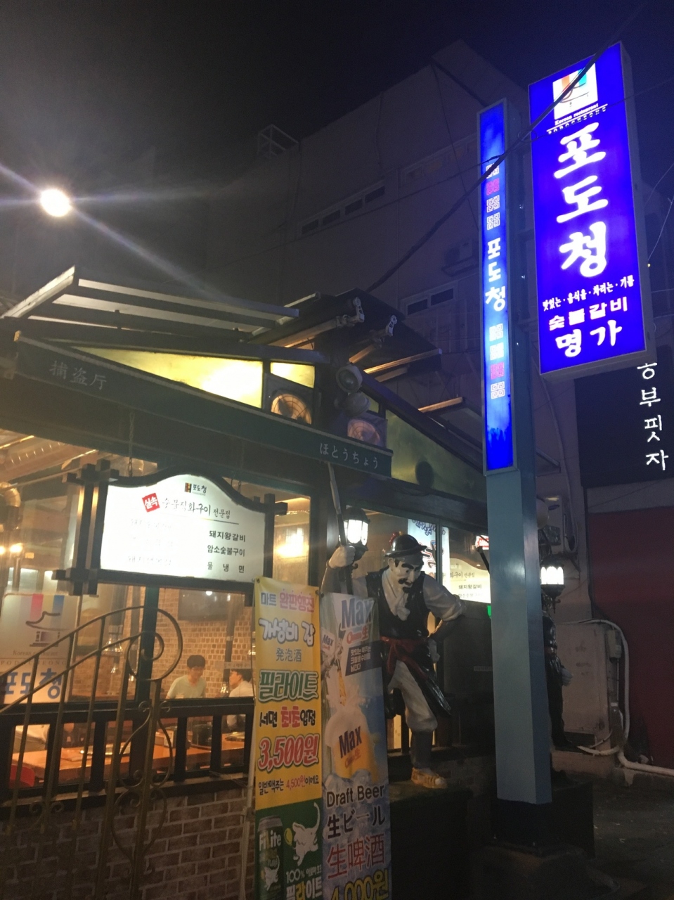 西面エリアにある焼肉屋さんです。甘めの味付けの豚カルビということで、孫も好きかなと思い、こちらを選びました。お店は繁華街の中にあり、ちょっと迷いました。3人で豚カルビ3人前とチゲとライスを注文しましたが、ちょうどいい量でした。香ばしく焼けた豚カルビをサンチュやゴマの葉に巻いて食べると大変美味しかったです。店員さんも焼いてはくれませんが、こまめに網を交換してくれました。