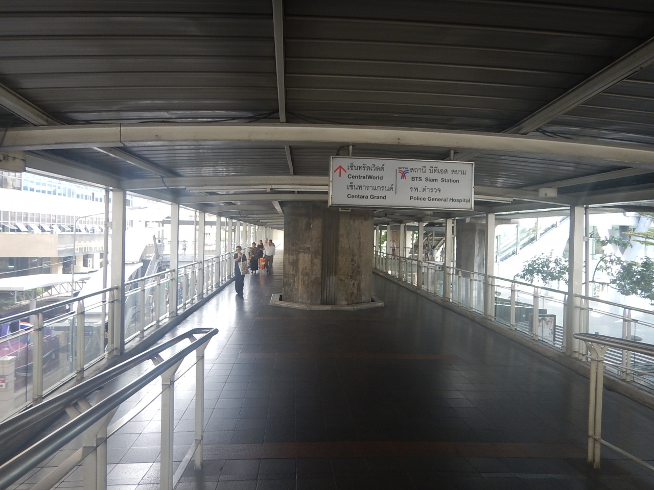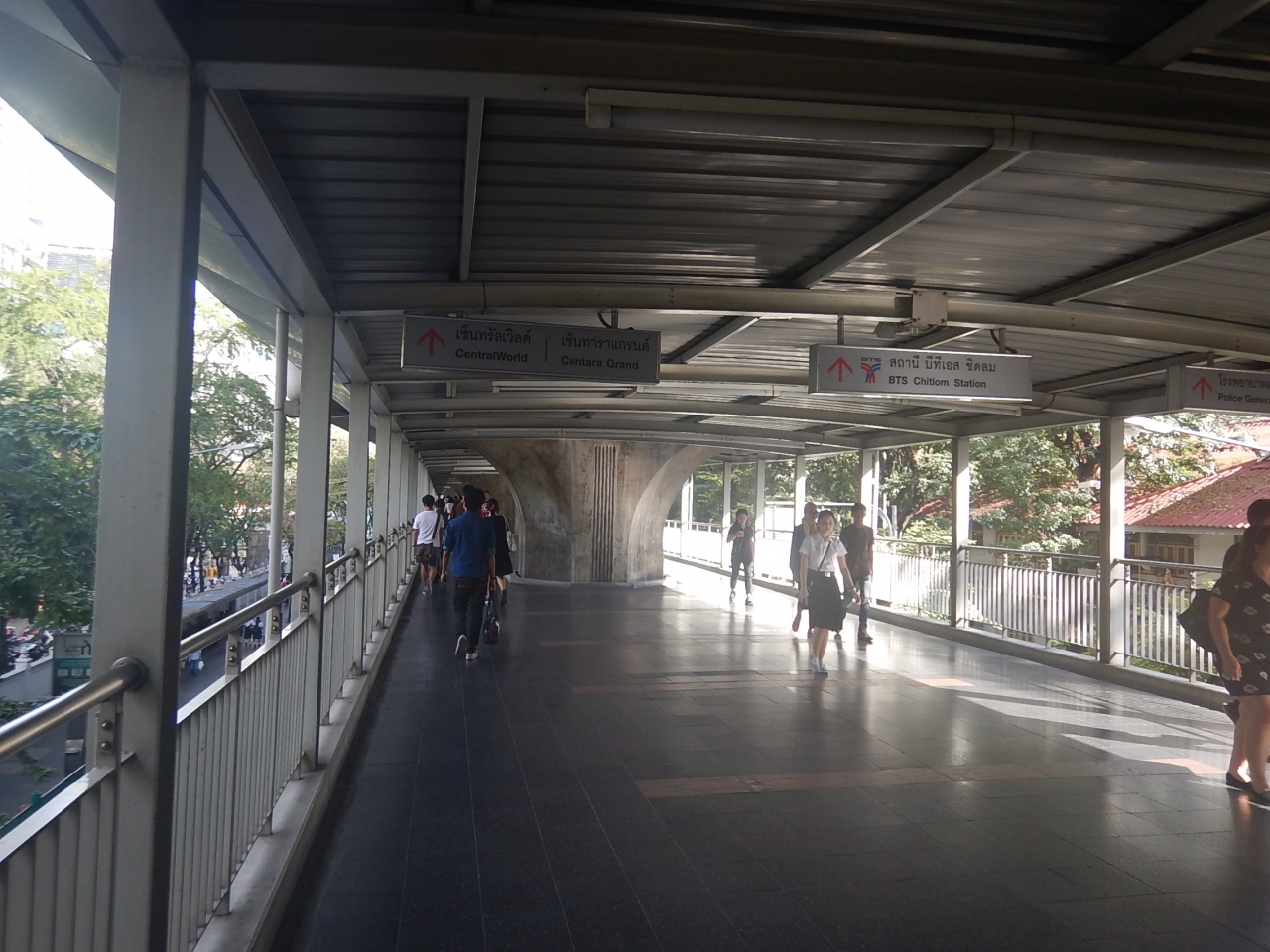 BTSのチットロム駅とサイアム駅を結ぶ歩道橋。屋根があるので突然のスコールでも濡れずに歩ける。ただ、地上10mぐらいで「スカイ」とはちょっと大げさな気もする。最近ではスカイウォークに入れていいのかわからないが、セントラルワールドからプラチナムファッションモールまで、歩道ができたりとラチャダムリ通りにも建設が進んでいる。