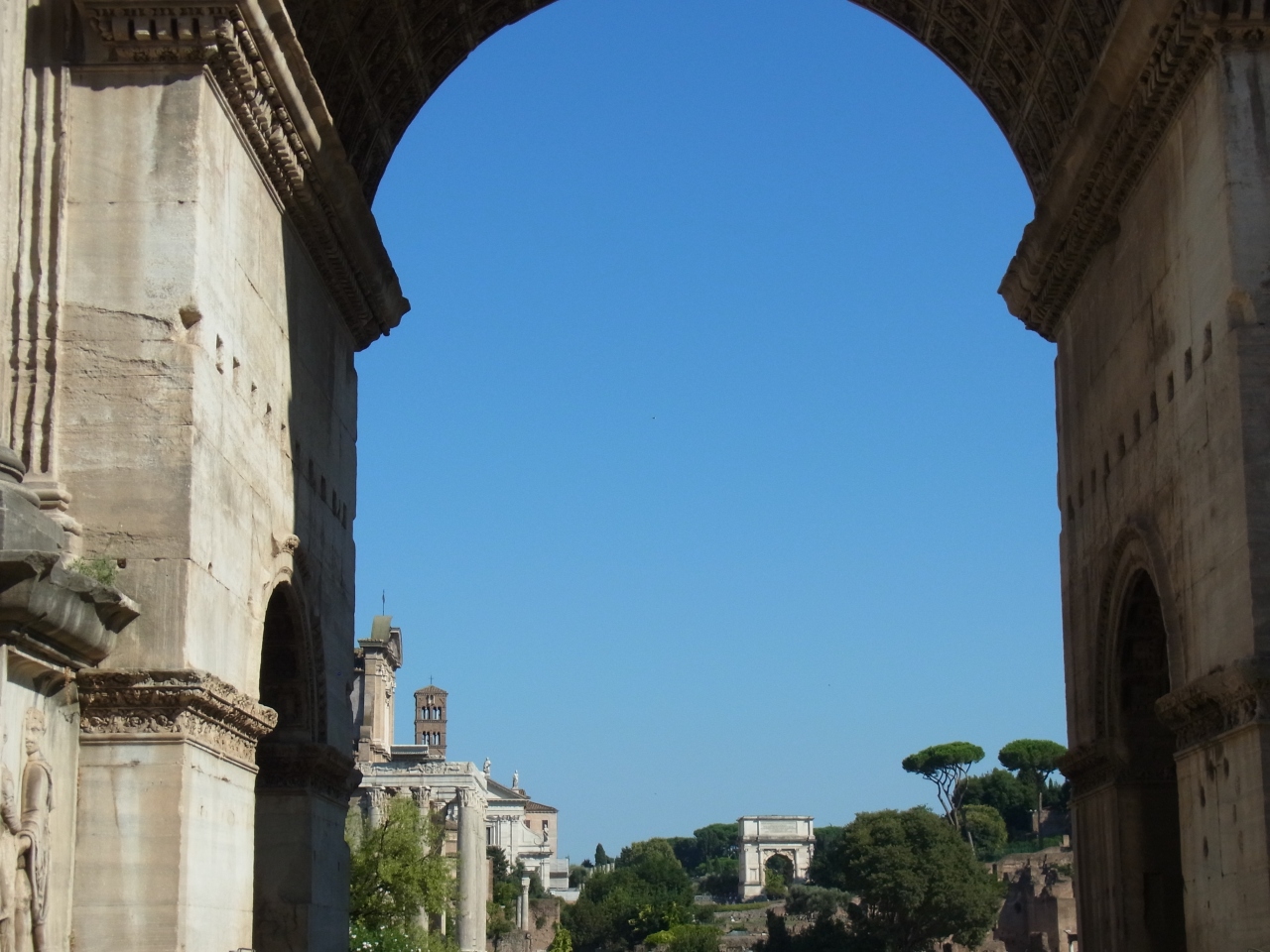 フォロ・ロマーノをかなり暑いなか、東からパラティーノの丘へ上がり、沢山、歩いてきて、最後にこの凱旋門を見ました。歩きやすい靴で行くのをお薦めします。