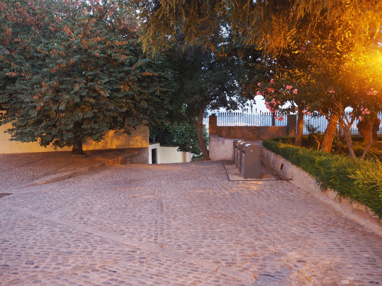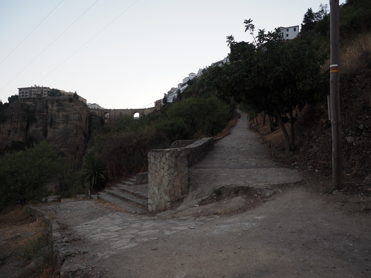 ヌエボ橋を渡り、最初に右折する車がやっとすれ違うくらいの道を歩いて行くと、Plaza de María Auxiliadoraという小さな公園に出る、そこから崖下への道が始まる。