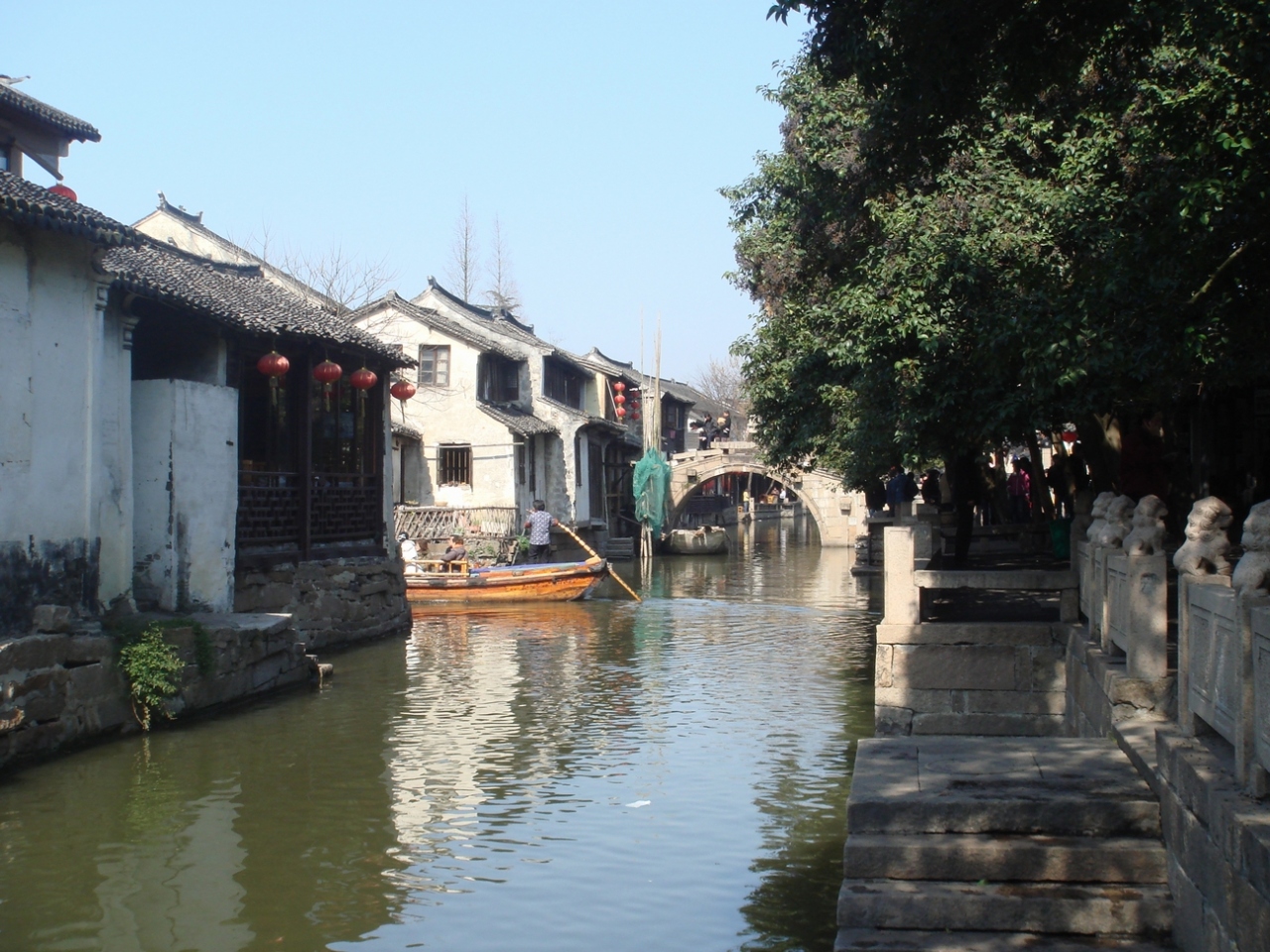 清代の中国風、運河に架かる橋もそう。細い路地も趣が
